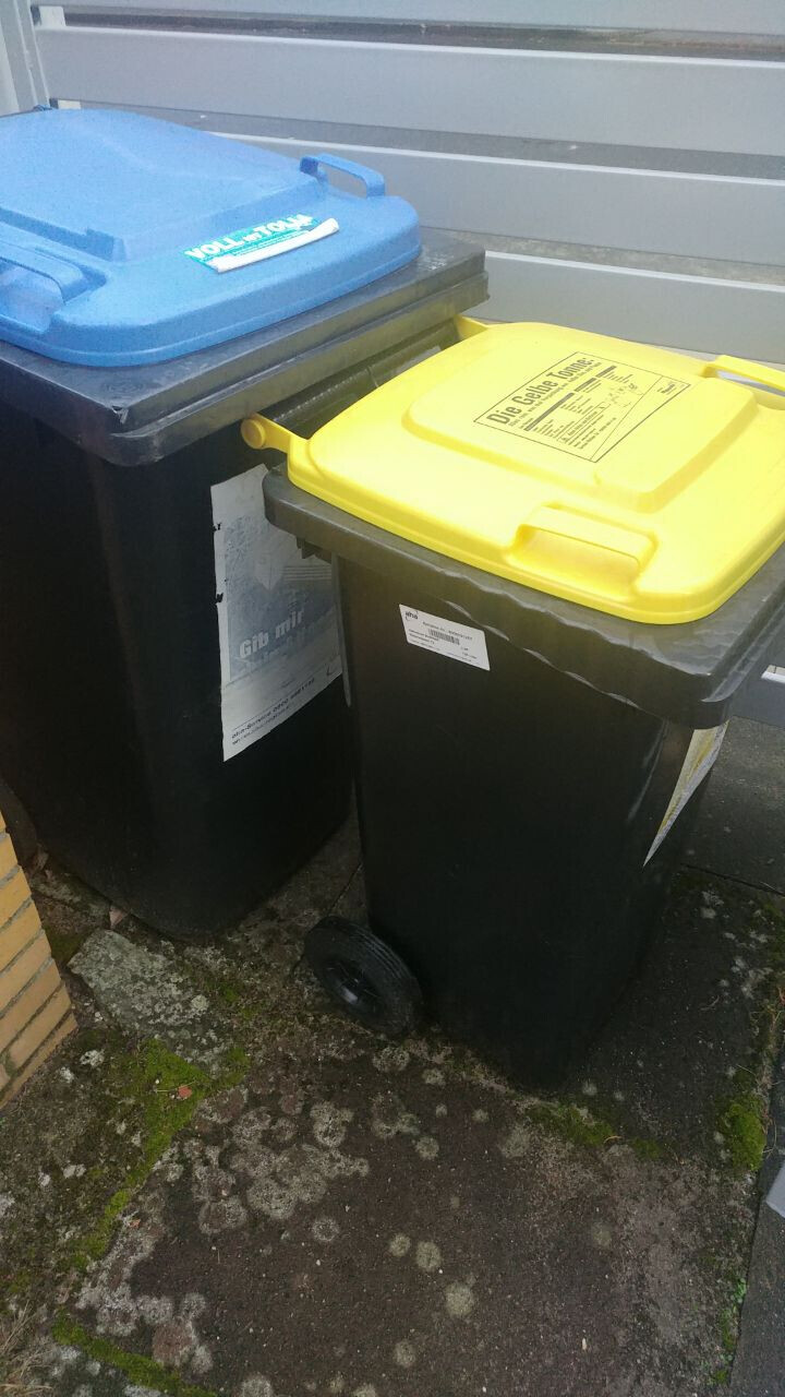Für die schnelle Nummer, also erste Hilfe, würde ich die Tonne einfach mal umstellen. Bei uns kommt derzeit der Wind aus NW und im Osten gibt es keine Böh oder dergleichen, was eine Mülltonne in Bewegung setzen kann.