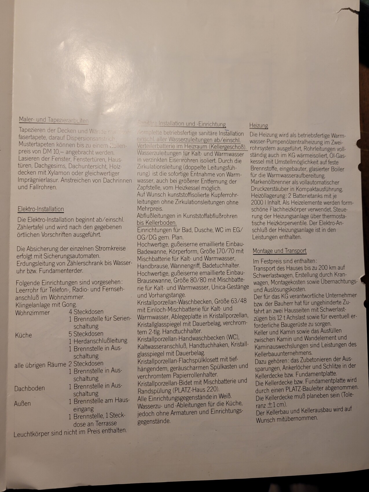 Ich versuche vergeblich Informationen zu Platz Häusern aus den späten 70ern/Anfang 80er zu finden [...] Status Quo liegt mir nur die Baugenehmigung von 1978 vor. Hat von euch jemand Erfahrungen & kann mir evtl bzgl Informationsbeschaffung weiterhelfen?Bei der Vergeblichkeit des Versuches dürfte es wohl bleiben. Sowohl der Hersteller als auch sein Übernehmer sind nicht mehr dieselben wie damals: Platz existiert nicht mehr, eine Nachfolgegesellschaft wurde in Kampa eingeschmolzen, aber dieser ehemalige Mitbewerber existiert heutzutage auch nur noch als Rechtsnachfolge des ehemaligen Unternehmens. Mit beiden beschäftige ich mich erst seit etwa fünf Jahren nach dem Baujahr Deines Hauses.Andreas1978 schrieb: