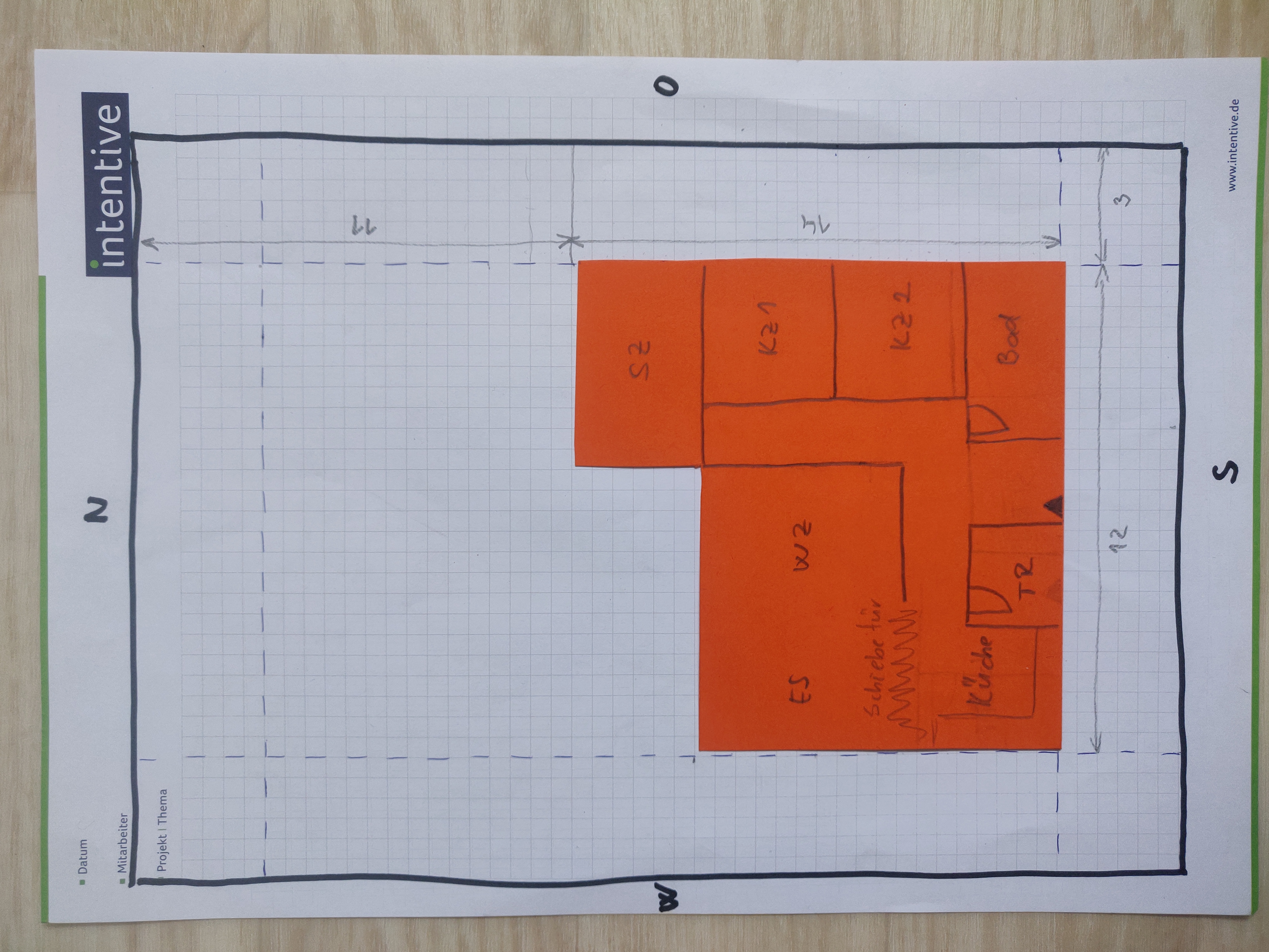Heute kann ich sagen, dass ich ein Entwurf habe, womit ich gut klar komme. Das einzige wo ich immer noch unsicher bin ist die Himmelsrichtung. Habe das Haus in Süden platziert, an der Straße, und habe dadurch Garten im Norden, mit einen schönen Blick in die Felder. Was sagt ihr dazu? Habt ihr etwas ähnliches und vielleicht bereits Erfahrung? Wo würde am besten Carport passen?