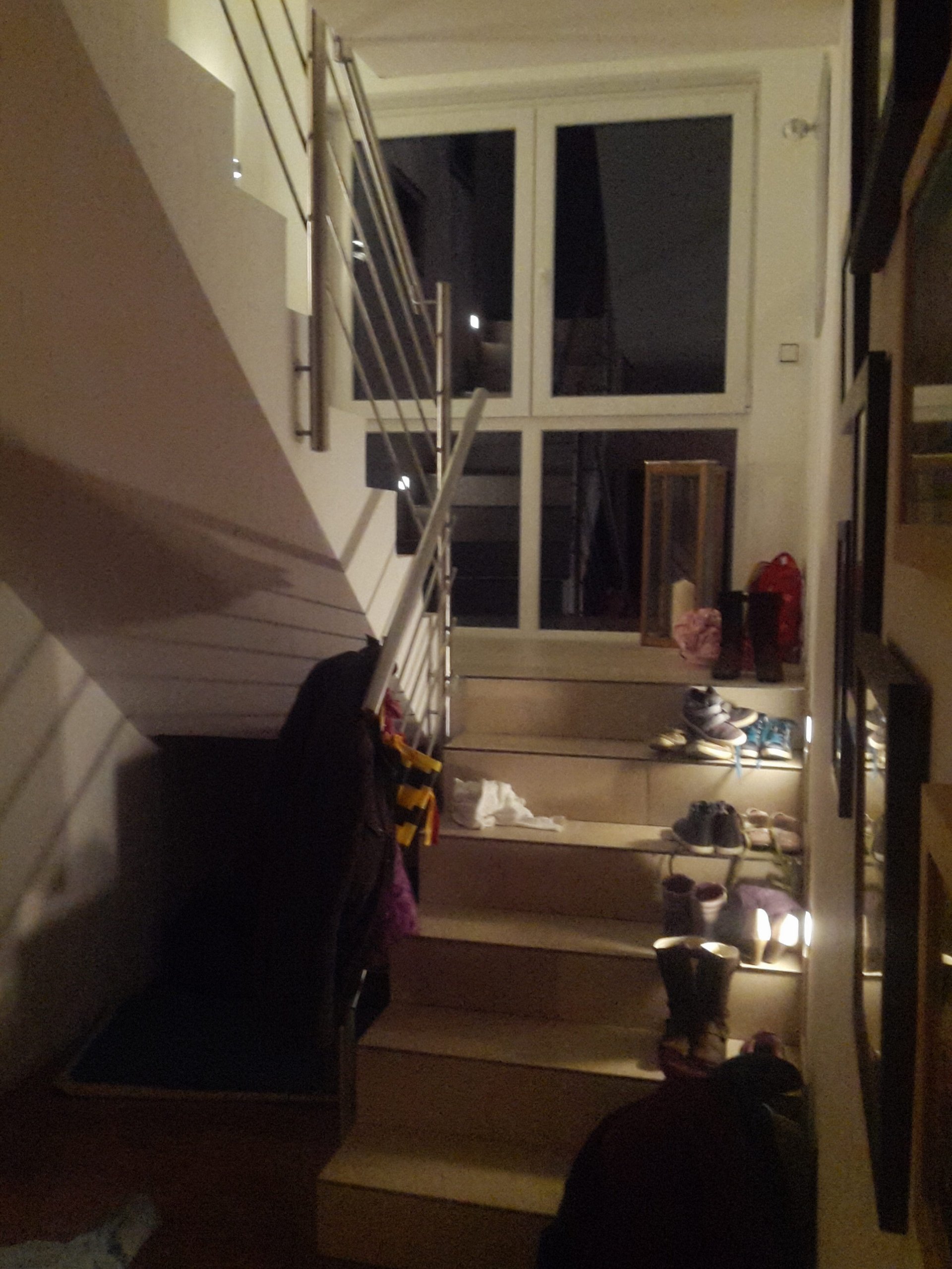 Super danke Dir für die Fotos. Weißt du wie breit eure Treppe ist ? Denke 1 m Lauf und der Steg würde mich interessieren, also zwischen den Laufflächen wo das Geländer sitzt.