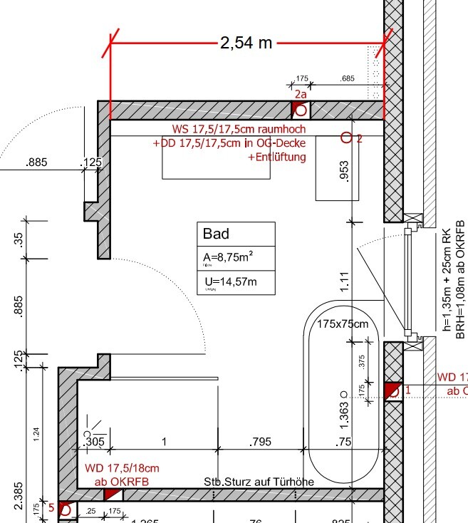 Johanna B08.09.24 22:59Hallo zusammen, ich muss sehr kurzfristig entscheiden wo die Löcher für die Spots in meinem Bad (Neubau) in die Betondecke gemacht werden sollen. Ich habe überlegt, Spots nur außen, also ca 50cm von der Wand entfernt anzubringen, weil ich glaube das es ein schöneres Licht gibt, wenn die Wand reflektiert. Die Fliesen sind dunkel anthrazit und gehen bis ca 120cm, der Rest der Wand ist weiß. Die Deckenspots an sich (Leistung, Farbtemperatur etc.) sind noch nicht entschieden. Was denkt ihr, wäre die beste Anordnung und warum? Macht meine Idee Sinn? Das Bad ist gelb markiert auf dem Foto. Habt ihr noch andere, Ideen? Es muss keine klassische Anordnung sein!