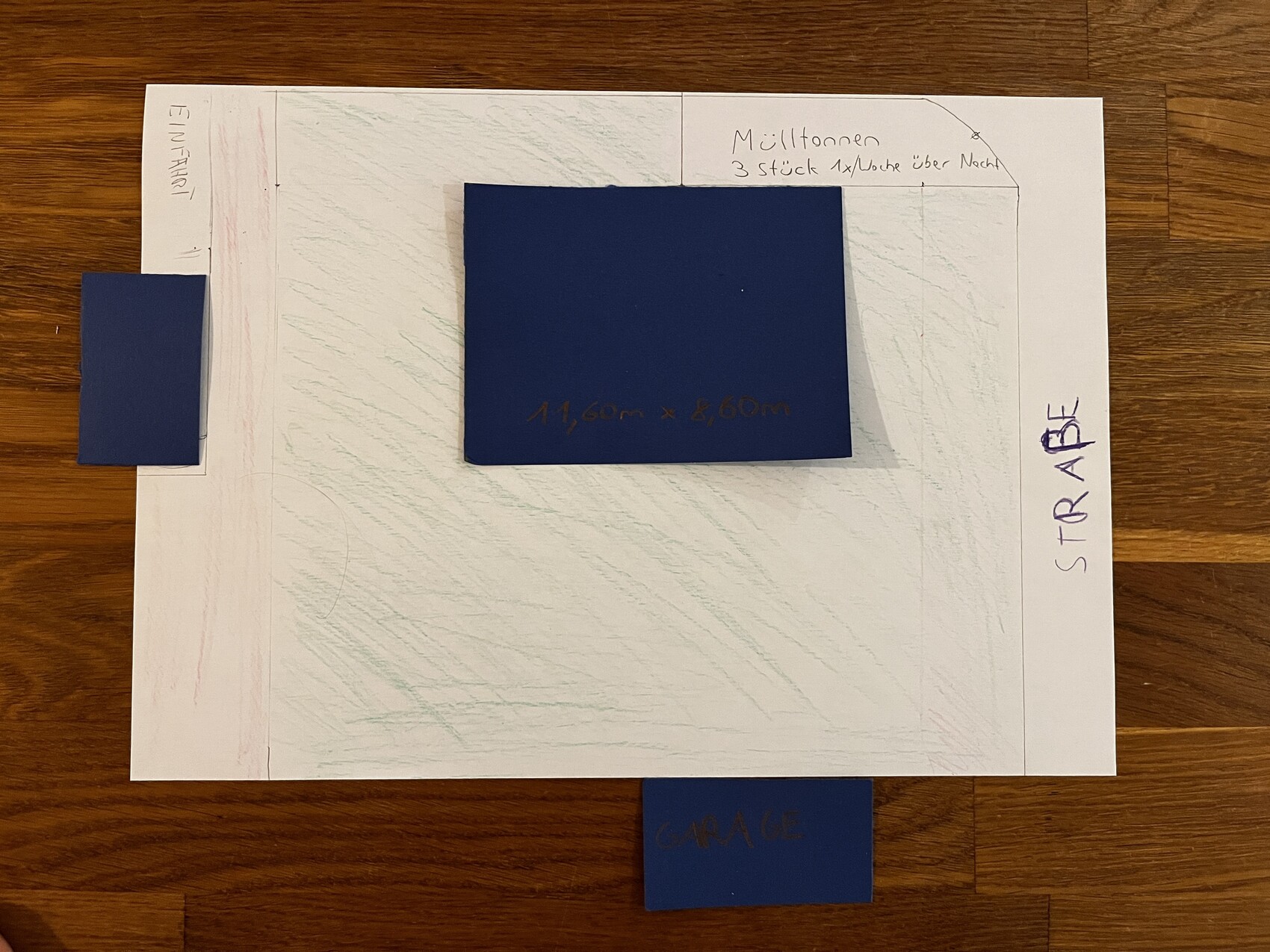Wir sind aktuell mit der Stadt im Gespräch, inwieweit wir den Mülltonnenstellplatz den anderen Parteien vollständig oder anteilig abkaufen können.. das würde hinsichtlich der Hausstellung einiges ändern.