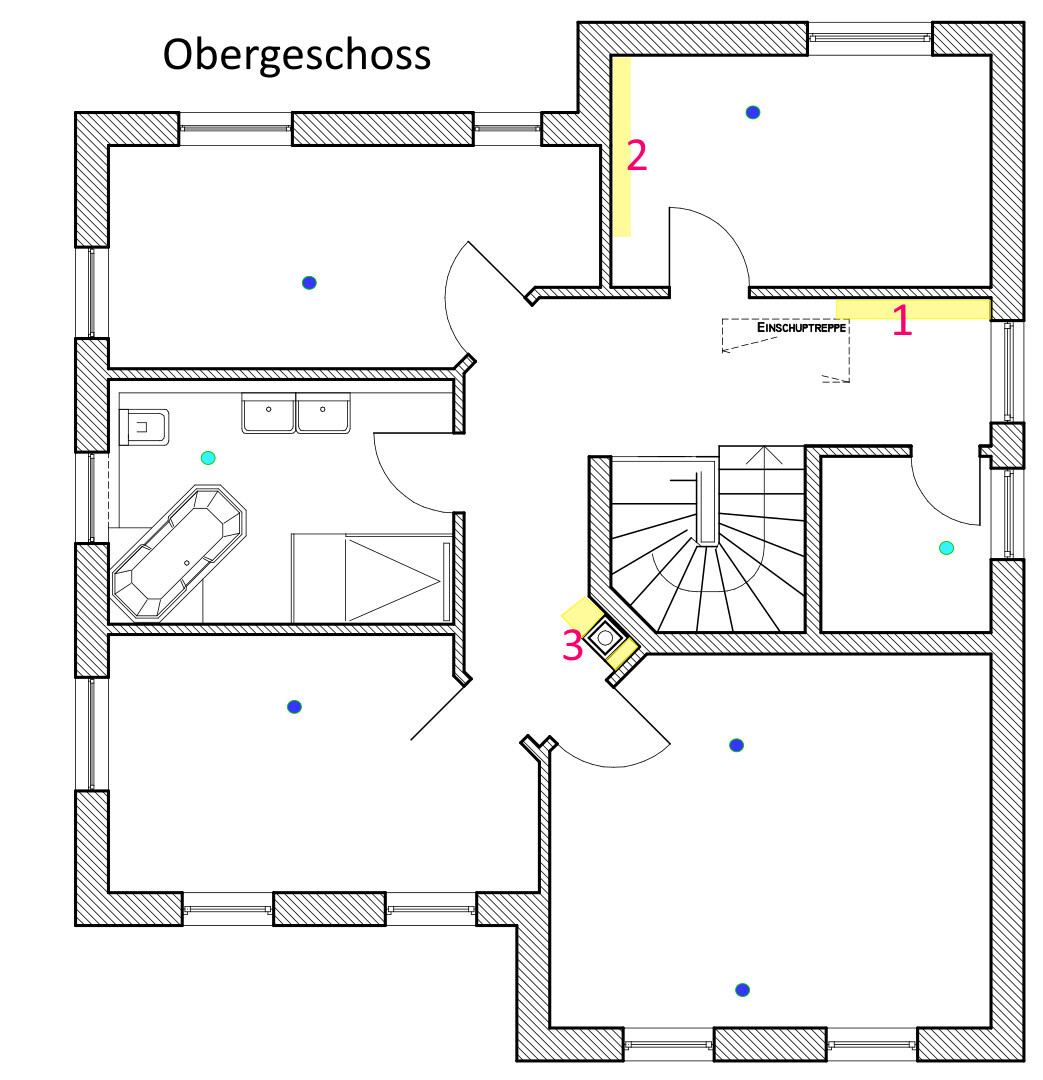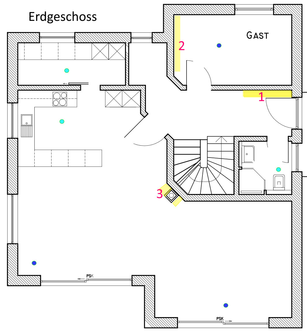 hellblauen Punkte = Abzug Kontrollierte-Wohnraumlüftung