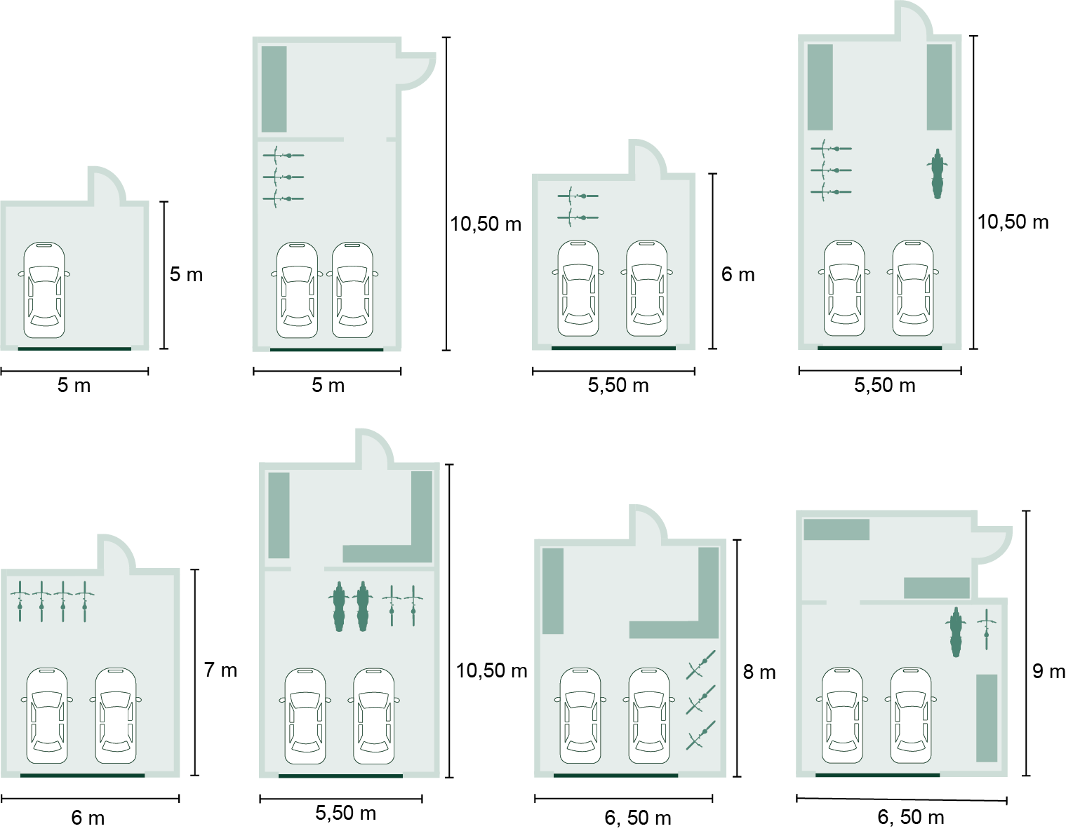 wenn deine Kästchen 1m breit sind passen doch nicht beide Autos in die Garage - oder ?Bei der Planung hatte ich mich damals an diese Übersicht orientiertDachte mir, wenn bei schon bei einer breite von 5m (außenmaße) zwei Autos passen, dann mache ich meine Garage 6m breit und ich habe dann etwas luft. Nun haben wir ein Innenmaß von ca. 5,5m. Das ist schon etwas eng, aber es passen zwei Autos rein.
