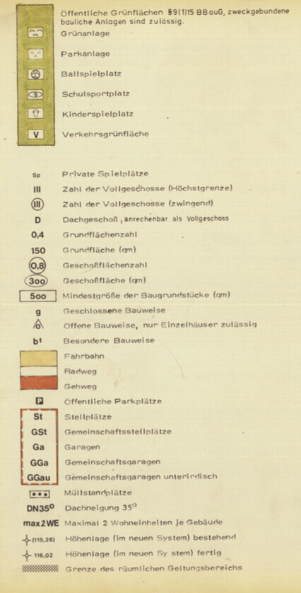 Die "Ga"-Sonderbaufenster stehen im Widerspruch dazu.Nein, im Text steht, dass Garagen integriert werden müssten... deshalb auch die hohe Grundflächenzahl, da es ansonsten keine Ausnahmen auf den Grundstücken gibt. Das ist im Gestaltungsrahmen nicht vorgesehen.Auf dem Maps-Bild #15 ist das Grundstück oben links.