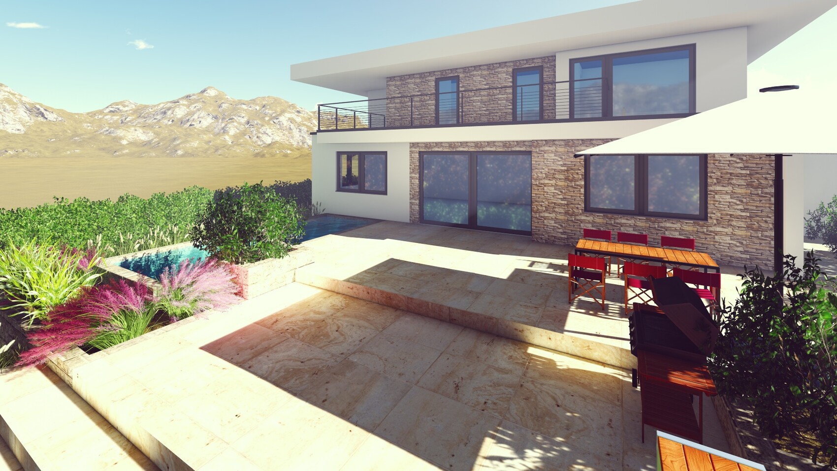 Da unser Terrasse nach Norden geht und man somit auf der Terrasse unmittelbar vor dem Haus eher im Schatten sitzt, werden wir wohl noch einen Freisitz oder sowas machen lassen.