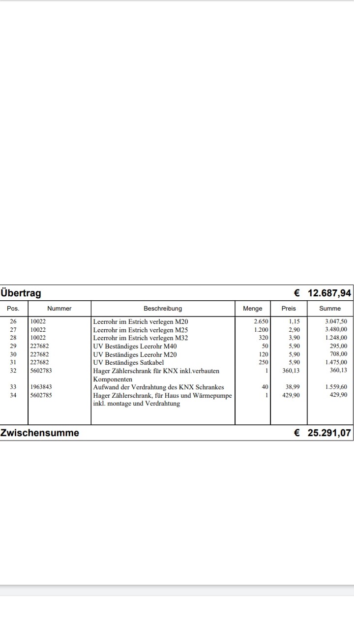Was mir direkt aufgefallen ist , die Preise sind plötzlich gestiegen und ich habe nur 18 Fenster/Jalousien...die letzten beiden Bilder sind vom ersten Angebot damals, es war eine abgespeckte Form von KNX oder so, da sieht man aber den Steckdosenpreis, ich bin mir auch sicher , dass er mit der Meterzahl der Leerrohre übertrieben hat.
