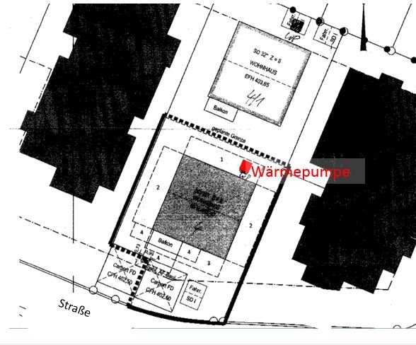 Dazu ist noch zu erwähnen, dass es ein gewachsenes Wohngebiet ist und das Grundstück eine Baulücke darstellt. Die Gebäude dort sind in den 80er/90er erstellt worden. Dementsprechend sind (Öl-) Zentralheizungen in den Nachbargebäuden verbaut, da es dort keinen Neubau gibt. Dementsprechend kann es auch keine Wärmepumpen in der direkten Nachbarschaft geben.