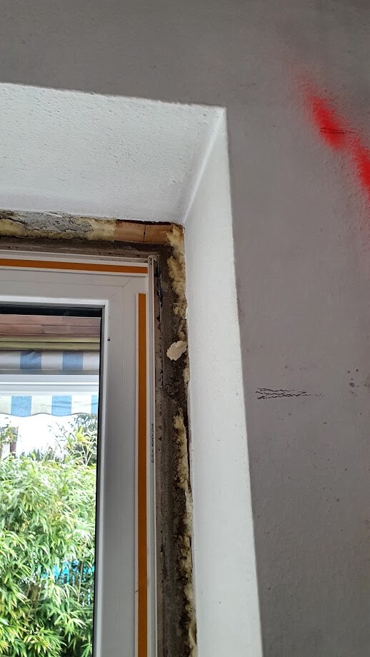 Jetzt sind die neuen Fenster, die Balkontüren und die Haustür im Schnitt zwischen 5 und 10 cm zu schmal, da ziemlich viel Putz drauf war.