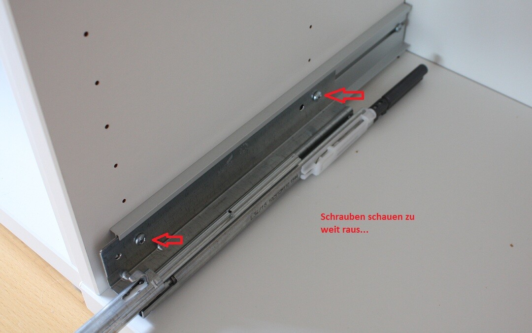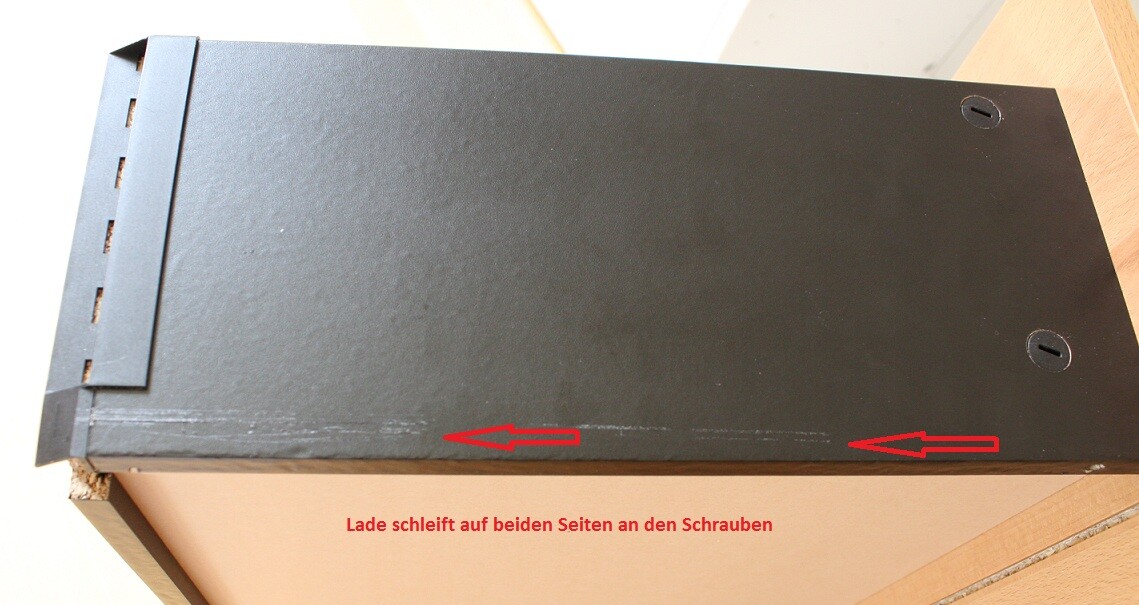 Die Lösung mit weglassen der Schraube in der Mitte funktioniert bei mir nicht, da die Lade