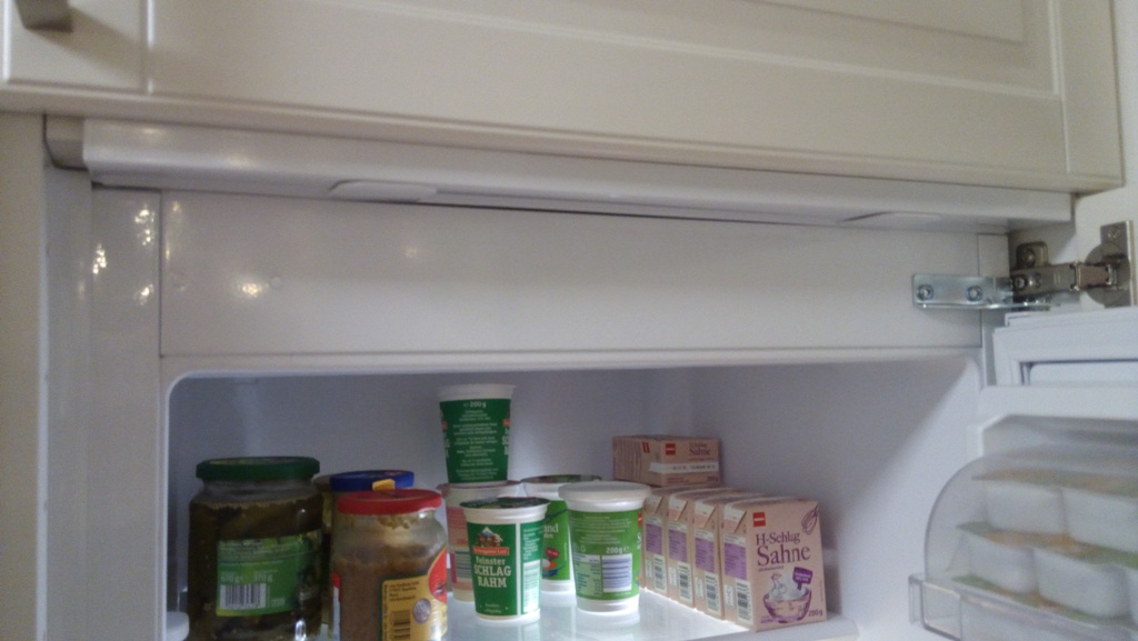 oben, die Eisenblende vom Kühlschrank geht etwas über den oberen Boden.