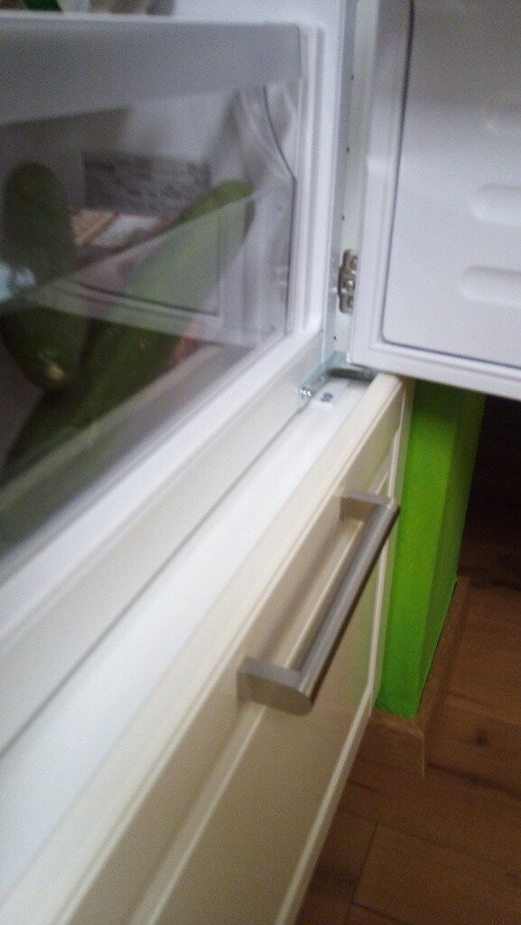 unten die Schubladenfront geht noch etwas über den Kühlschrank Sockel.