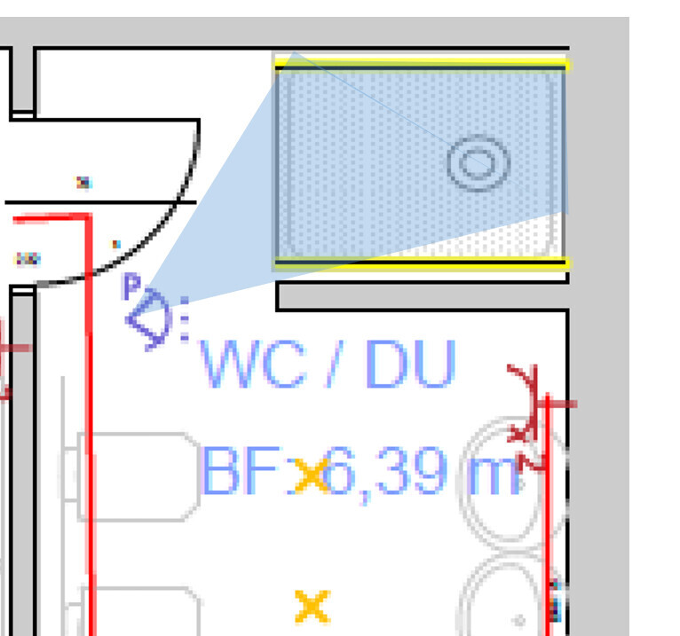Unten im Gäste-WC dasselbe. Da muss man schauen, ob man den zum funktionieren bekommt wenn der PM an der Wand neben der Eingangstür angebracht wird, aber ist eher schwierig. (Vorausgesetzt die Duschwand ist höher als 2m)Bei Bad und WC habe ich gedacht das die PM links und rechts von der Dusche erfassen können...oder hab ich da einen Denkfehler? Deswegen habe ich die auf Höhe von der Duschwand vorgesehen, die übrigens bis an die Decke gehen soll. Dusche sind oben und unten mit LED-Stripes ausgestattet. Würde hier aber auch was anderes verbauen, Hauptsache nicht zu grelles Licht beim duschen.