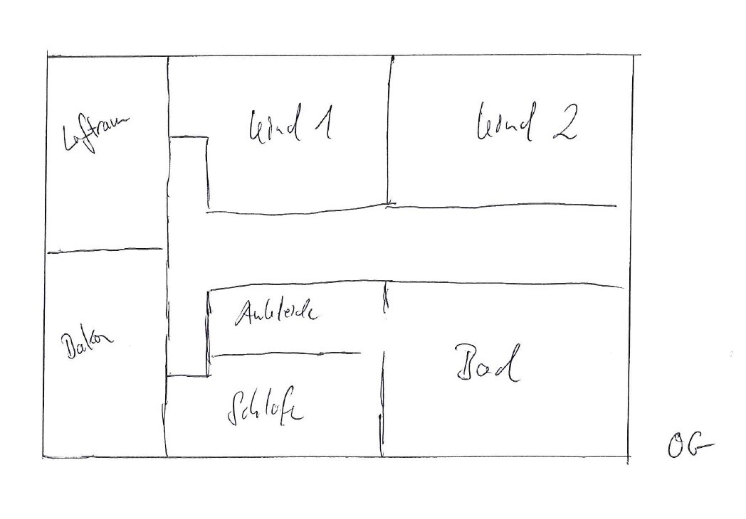 Nach Deiner Zeichnung würde ich K2 und Bad nach oben offen lassen.