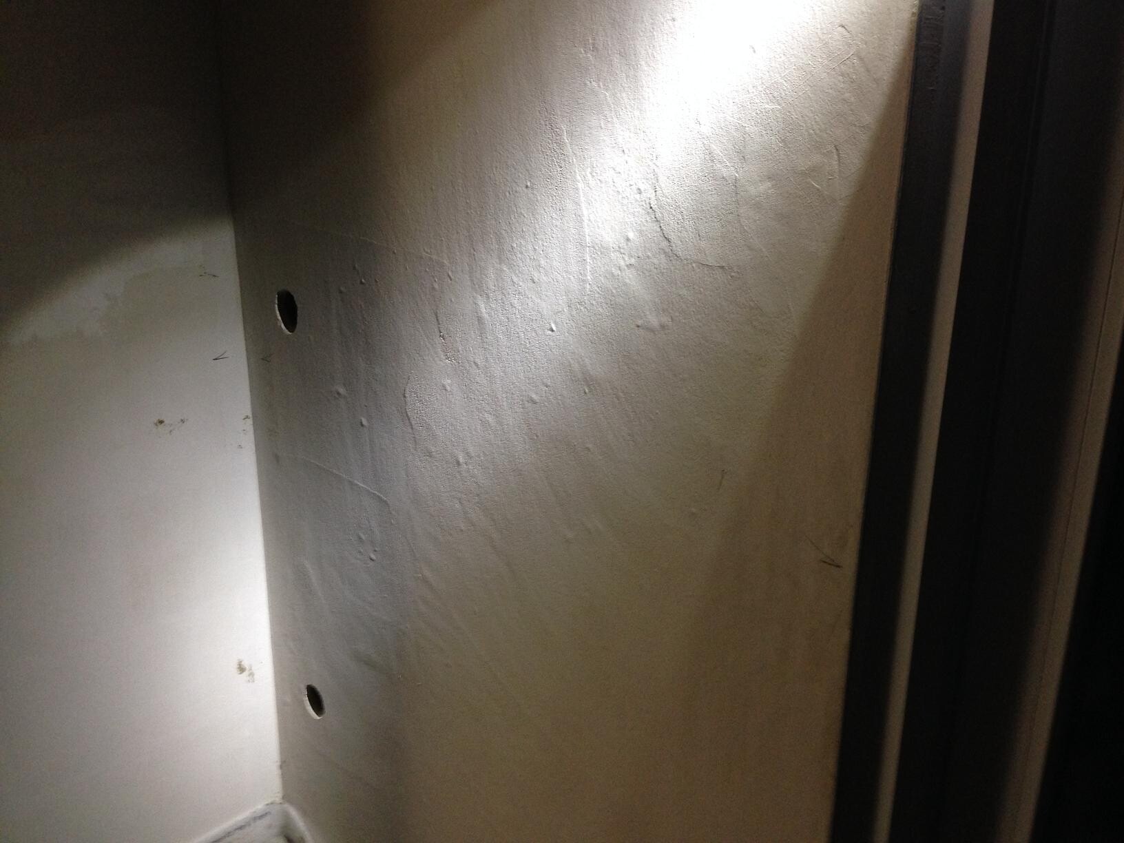 Das Streiflicht haben wir aufgestellt, um den Ärger besser darstellen zu können. Im Tageslicht sieht man die Struktur nicht ganz so stark, aber man sieht sie auch und gerade die hochizontalen Fugen der einzelnen Ziegelreihen sind sichtbar, was doch eigentlich gar nicht sein kann ... War jetzt in einem anderen Neubau, wo gerade verputzt wird und da sehe ich absolut gar nichts an Strukturen. Da ist es richtig glatt und dick und vor allem gerade, ohne Wellen und Blasen, wie bei mir