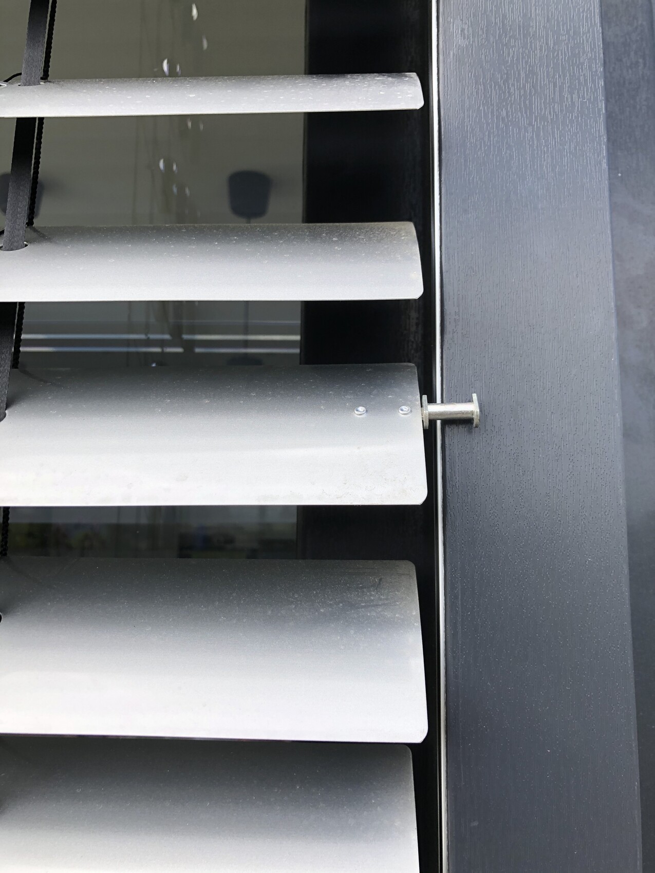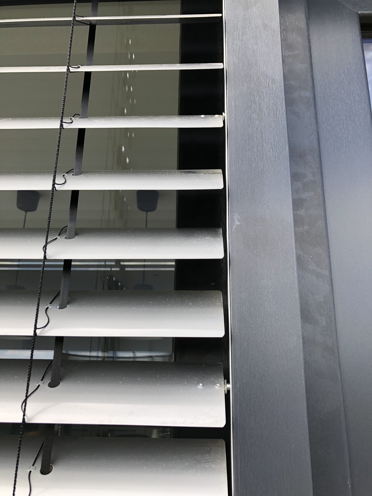 Der 2. Raffstore ist kurze Zeit nach dem Ausfall des 1. aus den Führungsschienen heraus gefahren. Auch das Problem wurde letzte Woche behoben. Heute wurde die Endlage aller Raffstores eingestellt. Kurz darauf ist der Raffstore wieder aus der Schiene heraus gefahren, siehe Bild.