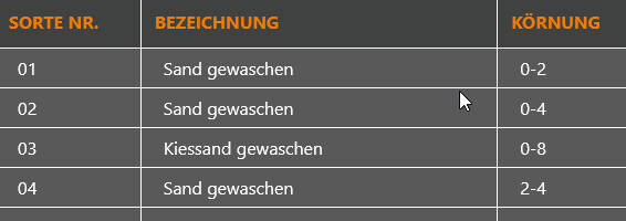 Sorry aber ich kenne kein Sand der 4mm Körnung hat, das ist eher schon feiner Kies.Mein örtliches Kieswerk bezeichnet das noch als Sand