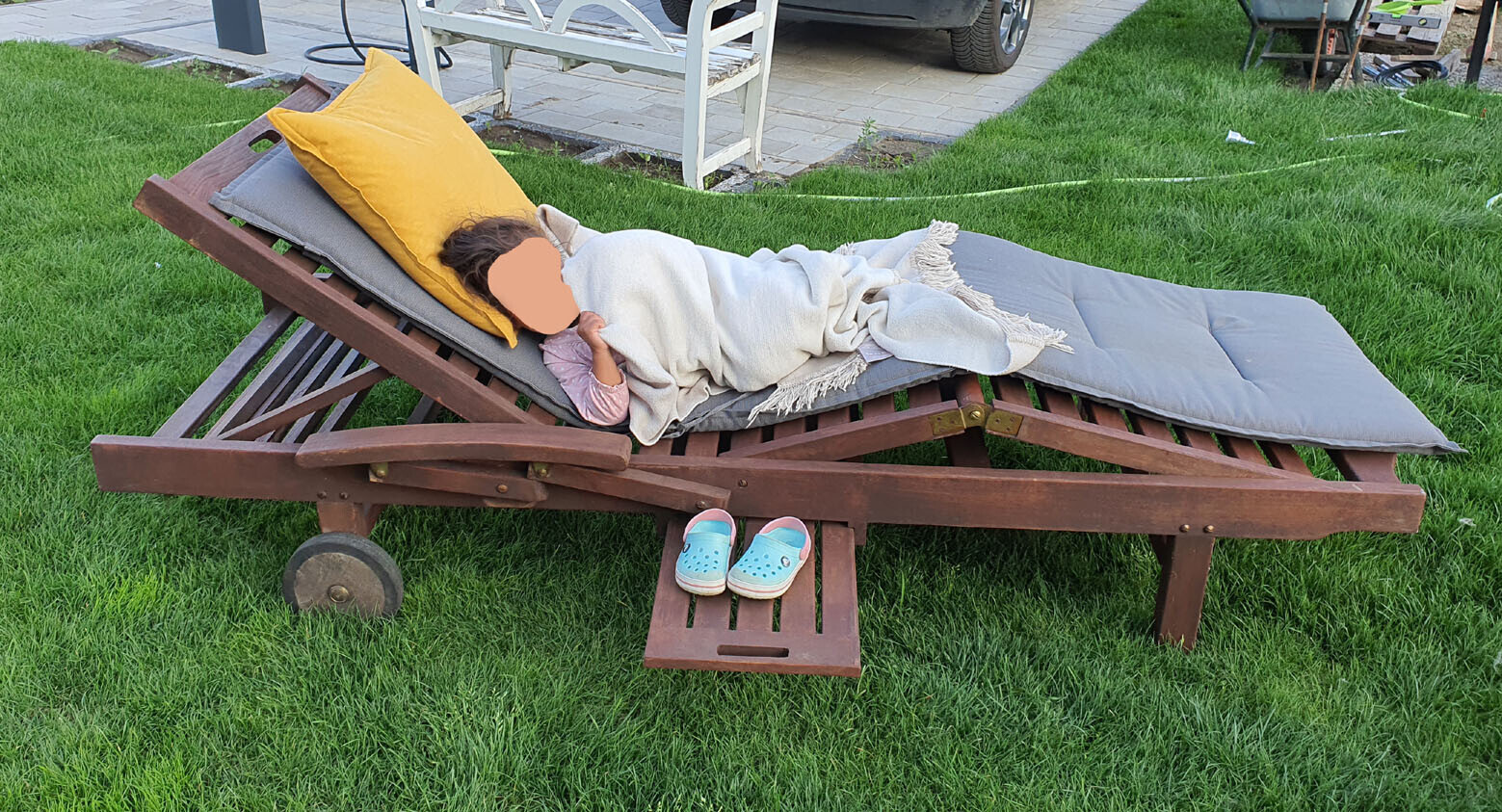Das ist ja noch keine Staubwüste, je nachdem wie deine Ansprüche sind, kannst du den auch einfach so lassen. Mach ich auch immer, der wird in regenreicheren Zeiten immer wieder grün. Und ich parke da noch meine G Klasse drauf 😉.statt der G-Klasse parke ich lieber meine Enkelkinder auf dem 2 Wochen alten Rollrasen 😉