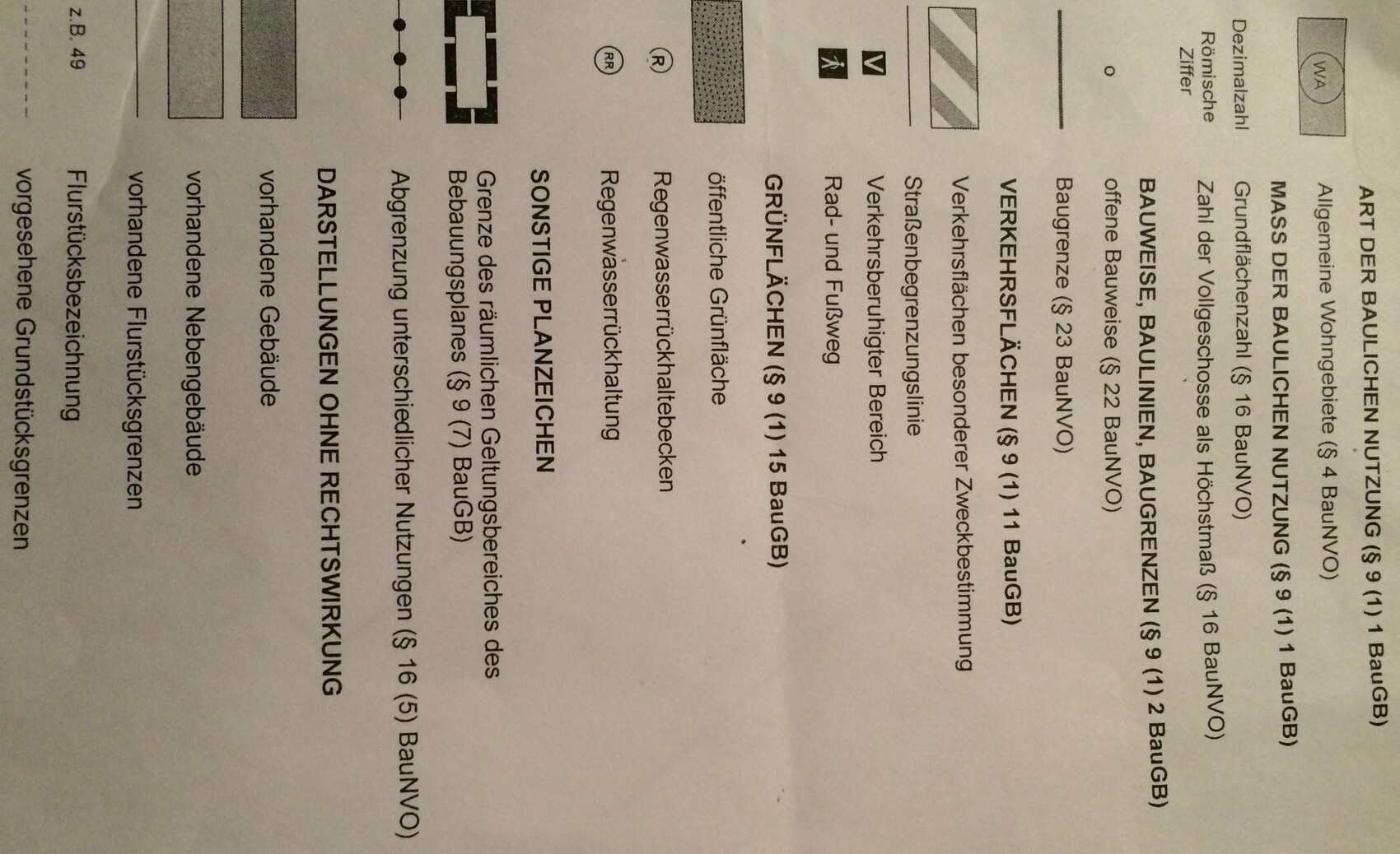 DiBu83 schrieb:Anhand der beigefügten Zeichenerklärung - leider nur in sw - kennzeichnet der durchgezogene, schwarze Strich das Baufenster (Baugrenze § 23 Baunutzungsverordnung). Für die Punkt/Strich/Punkt- und blau übermalte Linie liefert Dein aktueller Auszug der Zeichen keine Erklärung.