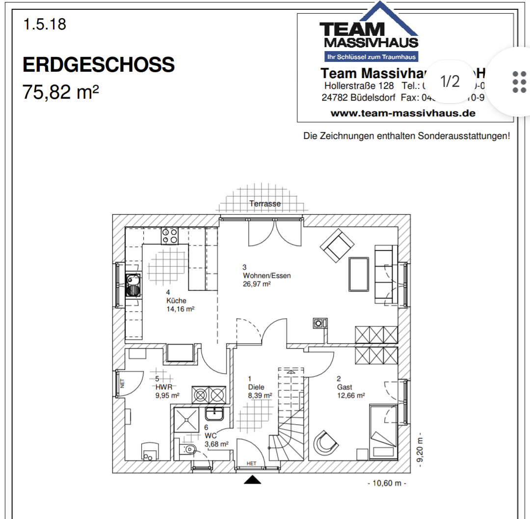 Zum Original-Grundriss: schon der ist bescheiden. Keiner möchte beim Eintritt in ein Haus unter eine Treppe schauen - es ist halt nicht die Schokoladenseite. TM hat sich noch noch bei keinem Grundriss Ruhm verdient.Der Bauvorschläge-Katalog von Team Massiv wirkt auf mich wie das Ergebnis einer thesaurierenden Sammlung von Kundenhäusern (was ich als Prinzip ggü. dem, schlicht den Hebel-Bausatzhauskatalog vollumfänglich zu kopieren, grundsätzlich begrüße - jedoch muß man diese dabei auch noch "abschmecken", was ich leider vermisse). Vorsicht beim Abkürzen: ein weiterer regionaler GU wäre Tönjes und Meichsner, mit denen ihr "altes" Haus gebaut hatte, und die ich persönlich empfehlenswerter finde. Insofern wollen wir da TM und T&M tunlichst nicht versehentlich verwechseln. Dann gäbe es noch z.B. Kagebau, die hier allerdings meines Erinnerns eher durchwachsen bewertet werden. In Kommentaren des hier leider passiv gewordenen finden sich ebenfalls zahlreiche Einschätzungen der Empfehlenswürdigkeit diverser inhabergeführter norddeutscher GU´, allerdings häufig mit einem Zusatz á la "bis Deekelsen geht der noch raus, vielleicht auch noch bis Büttenwarder, aber weiter wohl nicht" - auch wenn das mit der hiesigen Suchfunktion einen büschen mühselig ist, lohnt es sich nach diesen Kommentaren zu suchen, da Karsten meist auch darauf eingegangen ist, wie deren Ehrbarkeit als seriöse Pferdehändler einzustufen ist ;-)schmeissrein27.01.23 10:27