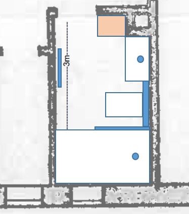 anbei mal die Skizze vom Umbau 75 mit selbsteingezeichneten Abmessungen. Kamin , Türe, Fenster, ansonsten ist alles draußen, es soll rein: eine Dusche, ein Bidet, ein waschbecken eine Heizung und natürlich irgend ein Schrank, da langt so ein hoher schmaler von Ikea.