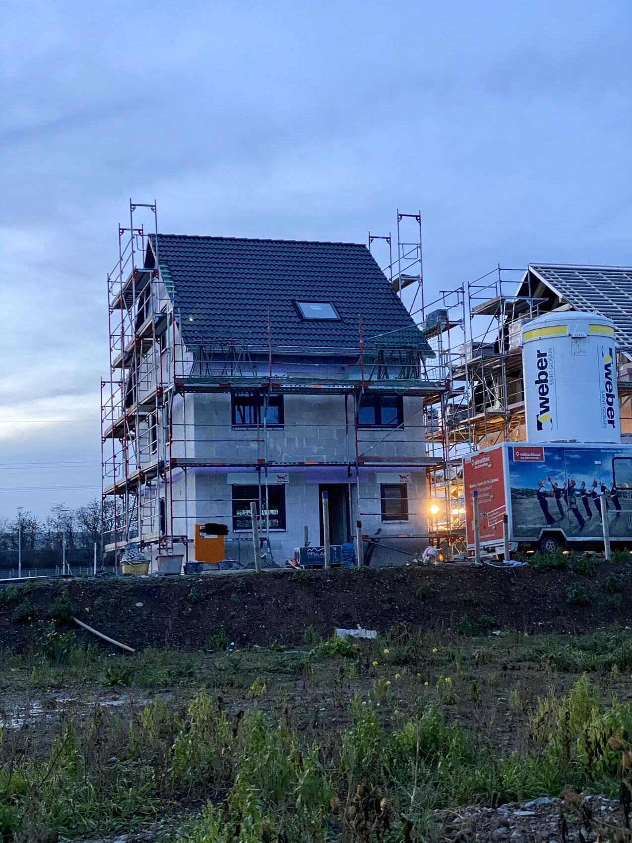 Das andere Endhaus wird jetzt aber auch in schnellen Schritten fertig. Wahrscheinlich bewußt, die wollen den Ärger mit dem Mittelhaus nicht .Das ist ein Viebrockhaus - die haben nur vier Monate garantierte Bauzeit.