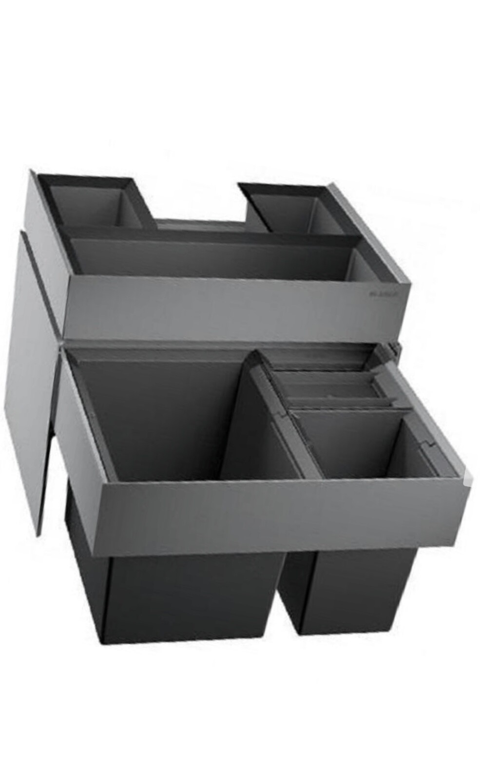 Warum hat die Spüle keine 2 Auszüge? Die Geschirrspüler Front kann man auch teilen (Optik).Unter der Spüle kommt solch ein Abfallsammmer (siehe Bild).