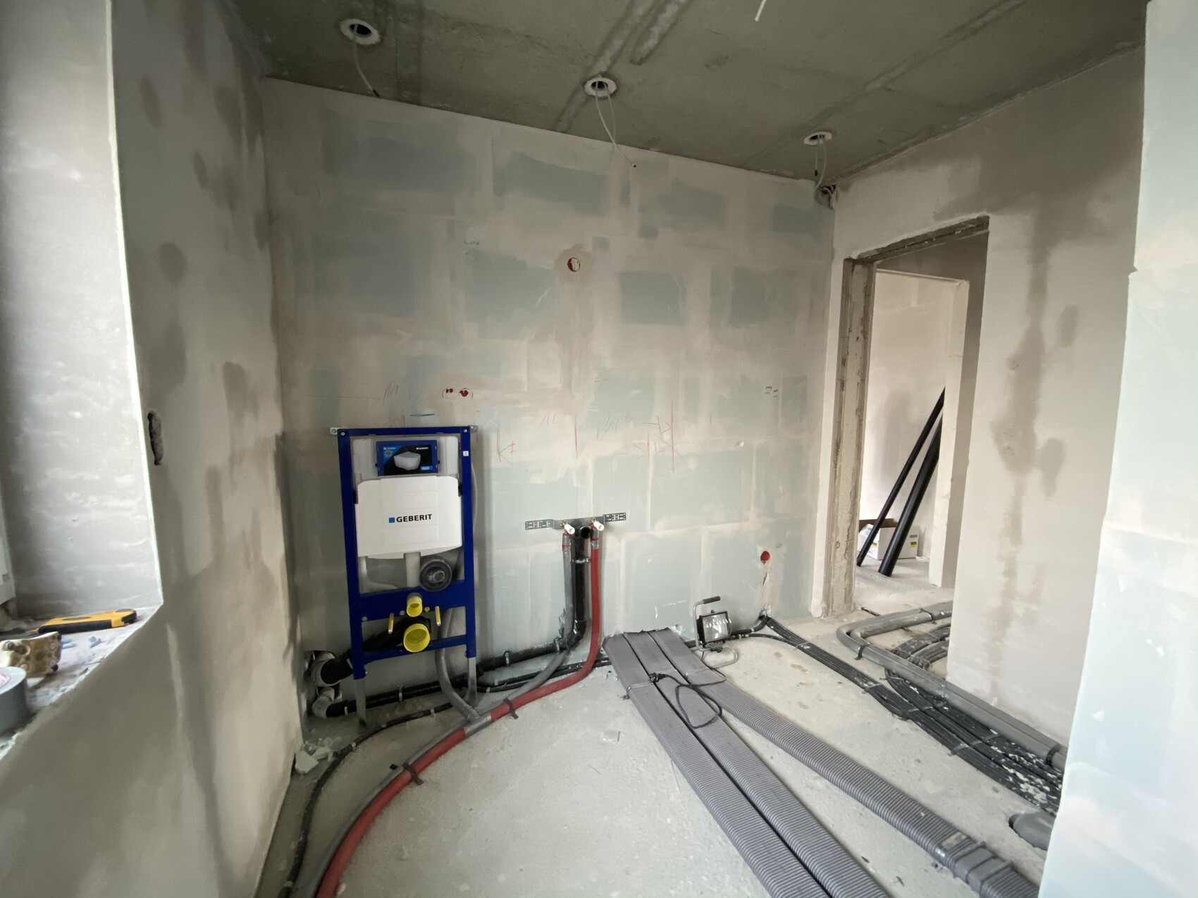 goalkeeper18.02.20 12:12So...seit heute ist dann der Sanitär mit der Rohinstallation durch, morgen kommen dann noch mal die Maurer und Donnerstag macht der Estrichleger die Dämmung rein und ab Freitag gehts dann mit dem Legen der Fußbodenheizung weiter.