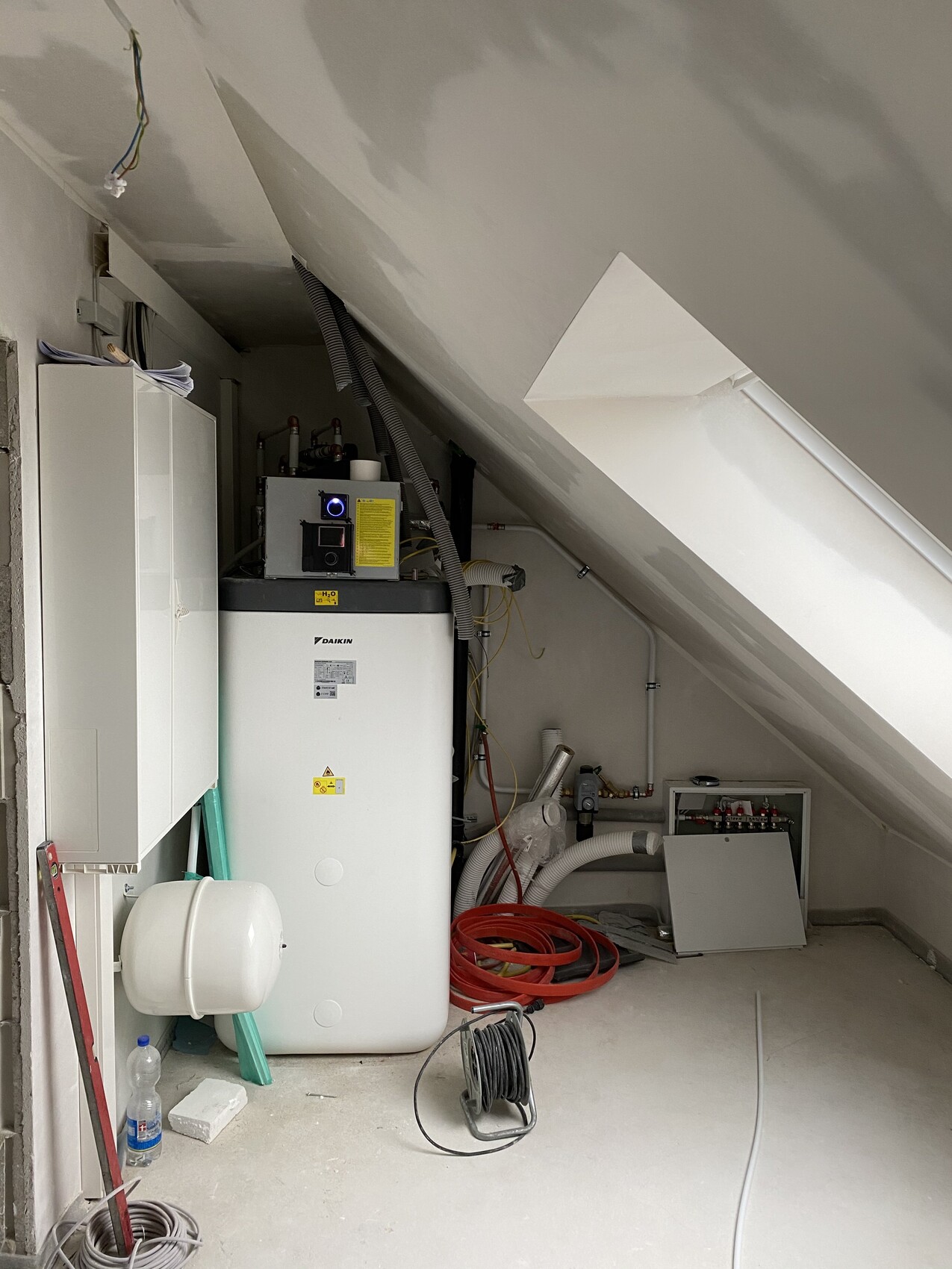 Das arme Schwein, welches die Verteilung für die Fußbodenheizung anbringen musste. (Ich glaub zumindest, dass es das ist, da unten in der Ecke des HAR?). So schlimm war das auch nicht...