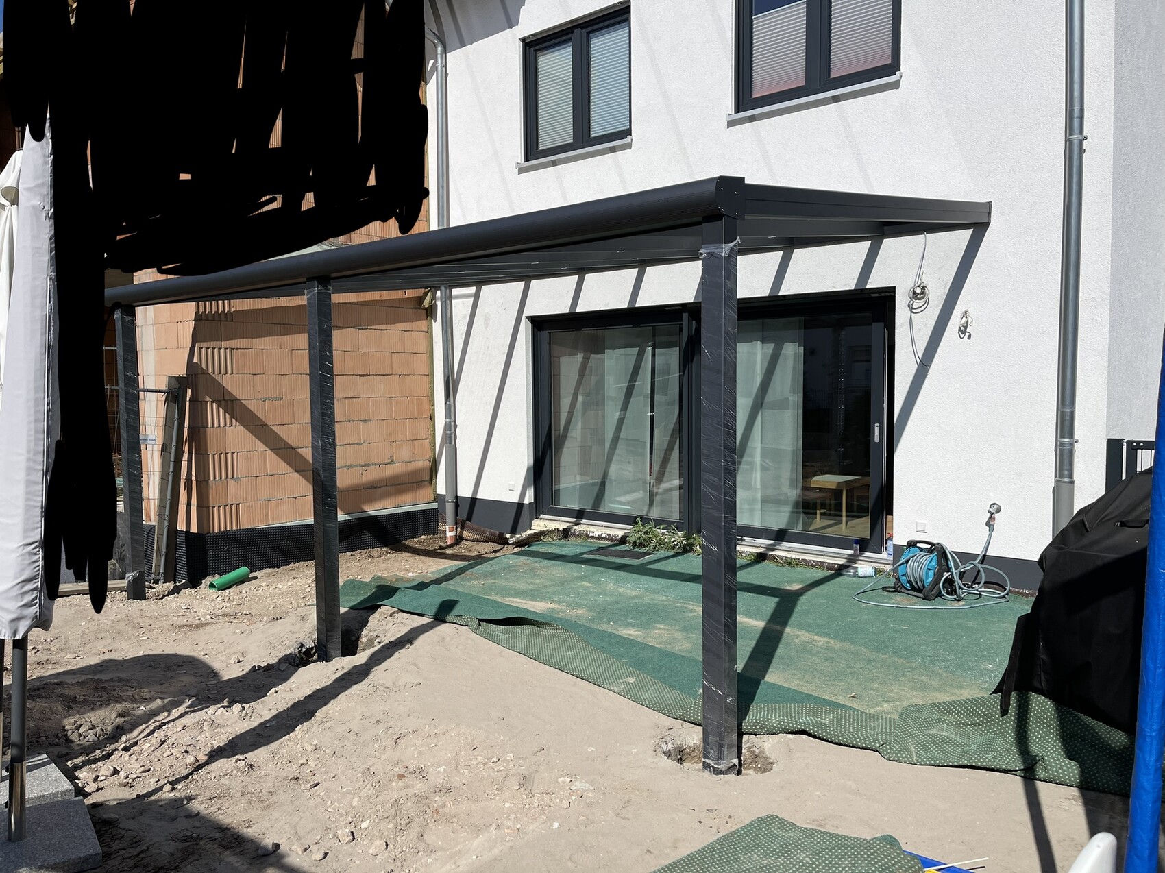 Der schüttet jetzt erstmal das Loch zu, dass Mittwoch die Terrassenüberdachung gestellt werden kann. Kommende Woche kommt dann die Terrasse dran.