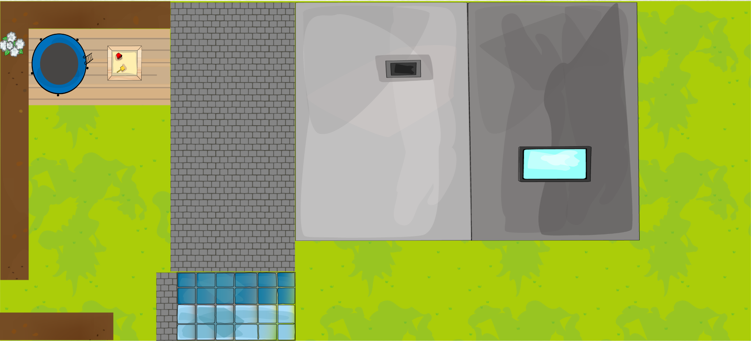 wir sind gerade in der Gartenplanung und haben zwei Varianten. Nr. 1 mit dem Spielbereich oben ist aktuell unser Favorit. Oben ist das Mittelhaus. Dort würde dann 2 x 1,80m hoher Sichtschutz hin kommen, so dass evlt. einmal der Sandkasten gegen einen Pool getauscht werden kann. Außerdem lässt es sich ebenfalls besser bewässern.