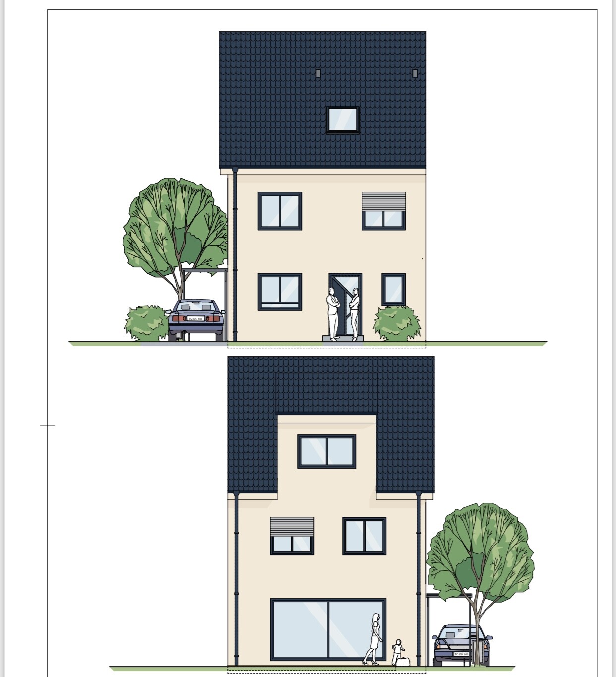 schön das du Grundrisse hochgeladen hast. Ich hatte mich heute morgen noch gefragt wie es aussieht oder ob ich was verpasst habe.Nun ja. Jeder plant und baut sein Haus wie er möchte - optisch sowie auch funktionell. Unsere Nachbarn beispielsweise bauen „nur“ zweigeschössig - wir klassisch für ein Reihenhaus 2,5-geschossig. Es gibt Maximalwerte, die es einzuhalten gilt. Weiter muss jede Hausgruppe die identische Dachform haben sowie die Satteldächer Dachneigungen, die sich Max. 5 Grad unterscheiden. Ansonsten gibts mit und ohne Keller usw. Ein munteres Reigen.