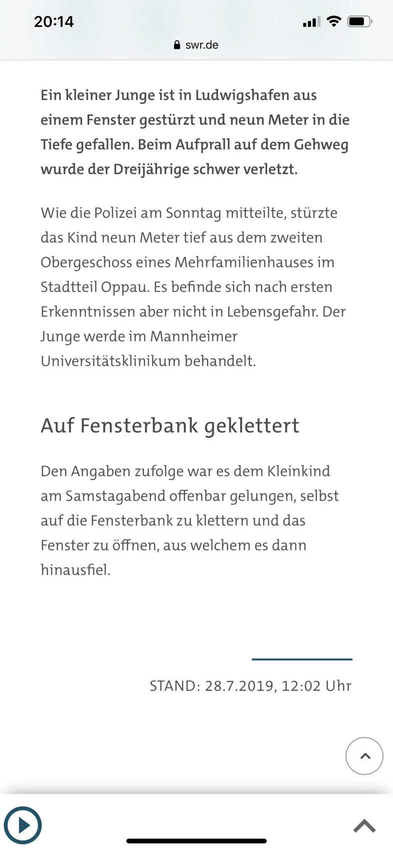 Ähm, es fallen regelmäßig Kinder aus Fenstern. Die springen nicht, die fallen.