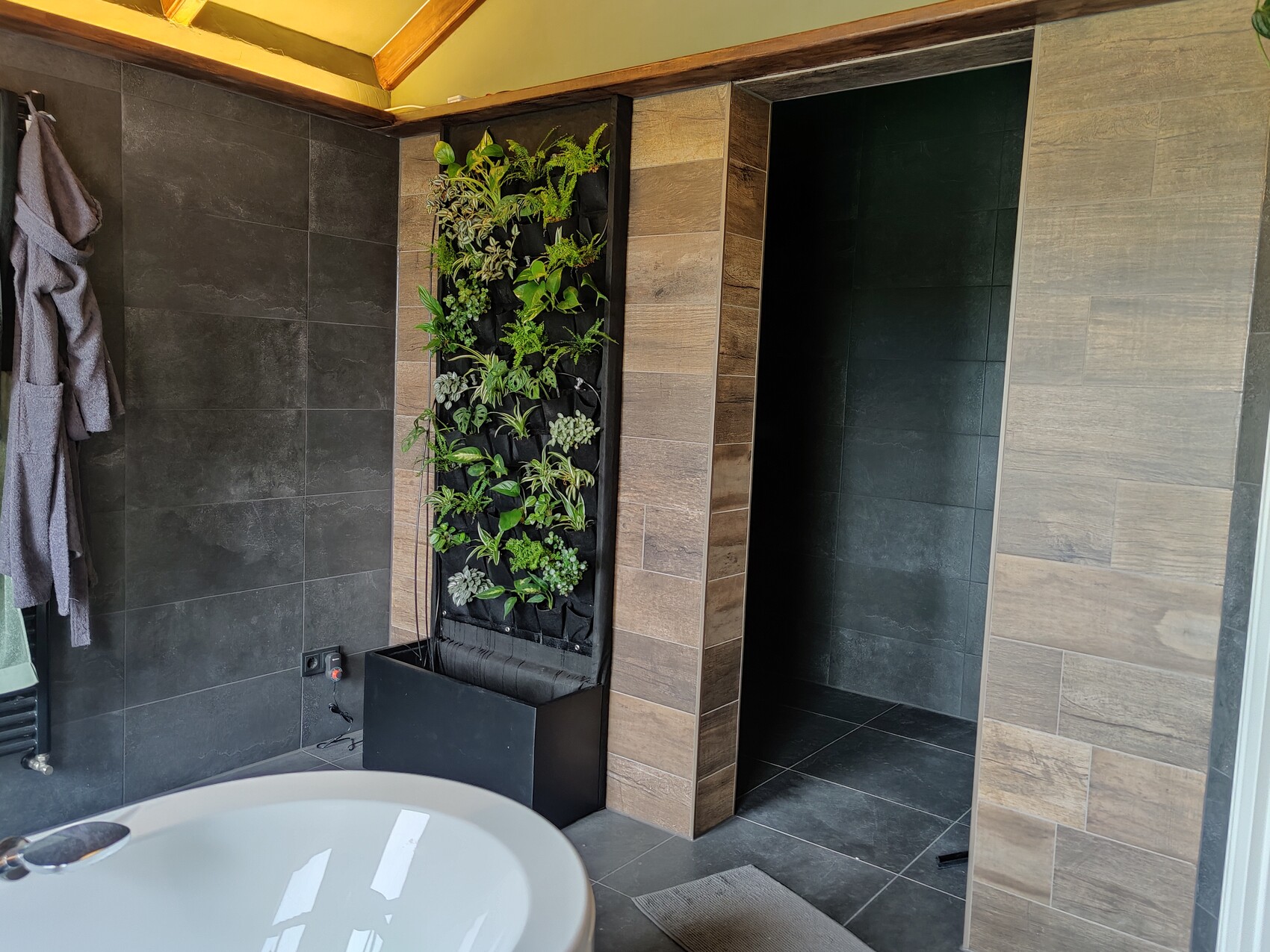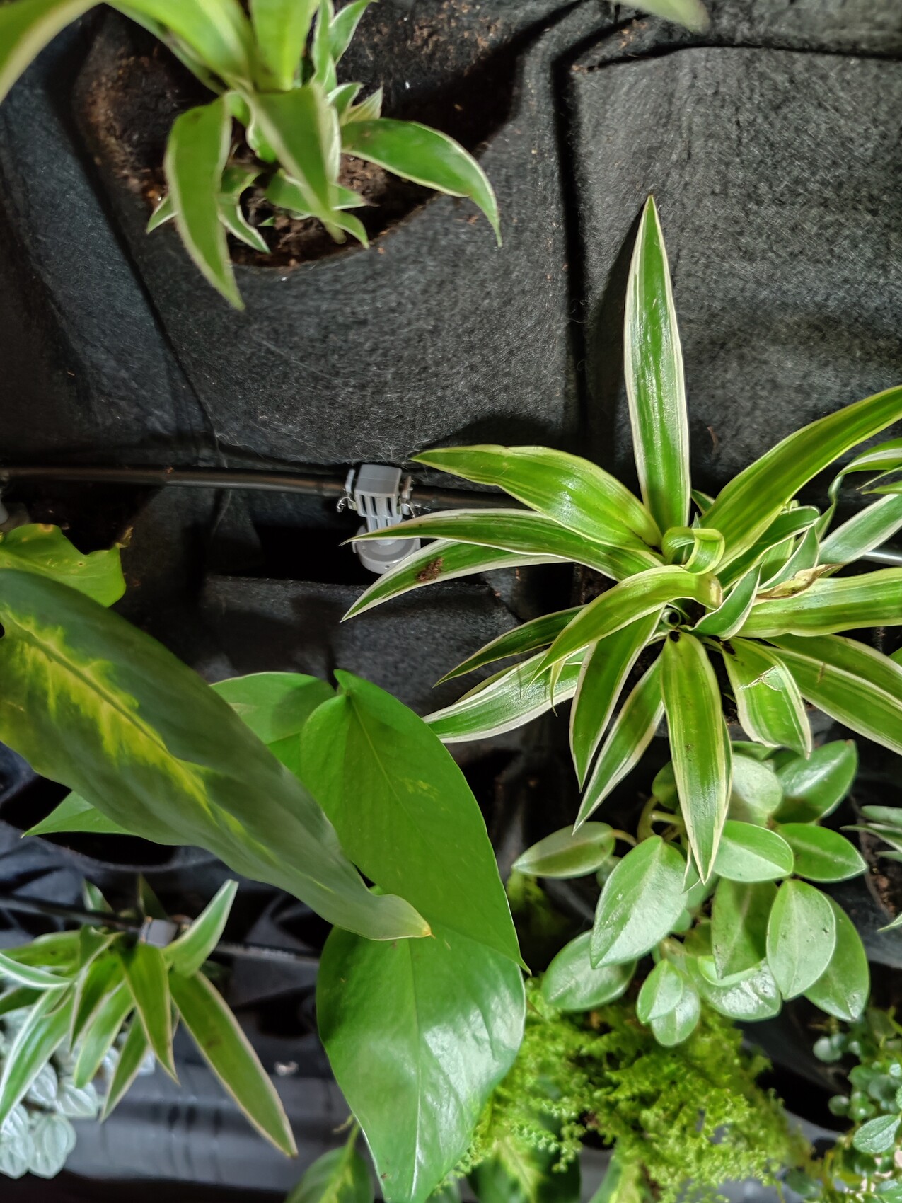 Bewuchs – alles was mir gefallen hat Ich habe versucht darauf zu achten, dass es Pflanzen sind die es gerne feucht mögen und dunkel. Wobei letzteres mir so mäßig gelungen ist: Ich bin mir sicher die Monstera findet das nicht ganz so witzig. Wir werden daher wohl noch eine Pflanzenlampe installieren. Es bleibt abzuwarten ob die Pflanzen langfristig mit der täglichen Bewässerung a 6 Minuten zurechtkommen und ob Ihnen das Substrat reicht. Die Größe der Taschen ist leider nicht besonders üppig. Die Pflanzen sind innerhalb eines Monates recht unterschiedlich angewachsen. Je nach Wuchsart der Pflanze haben wir die angrenzenden Taschen freigehalten, damit diese sich langfristig nicht gegenseitig überwuchern.