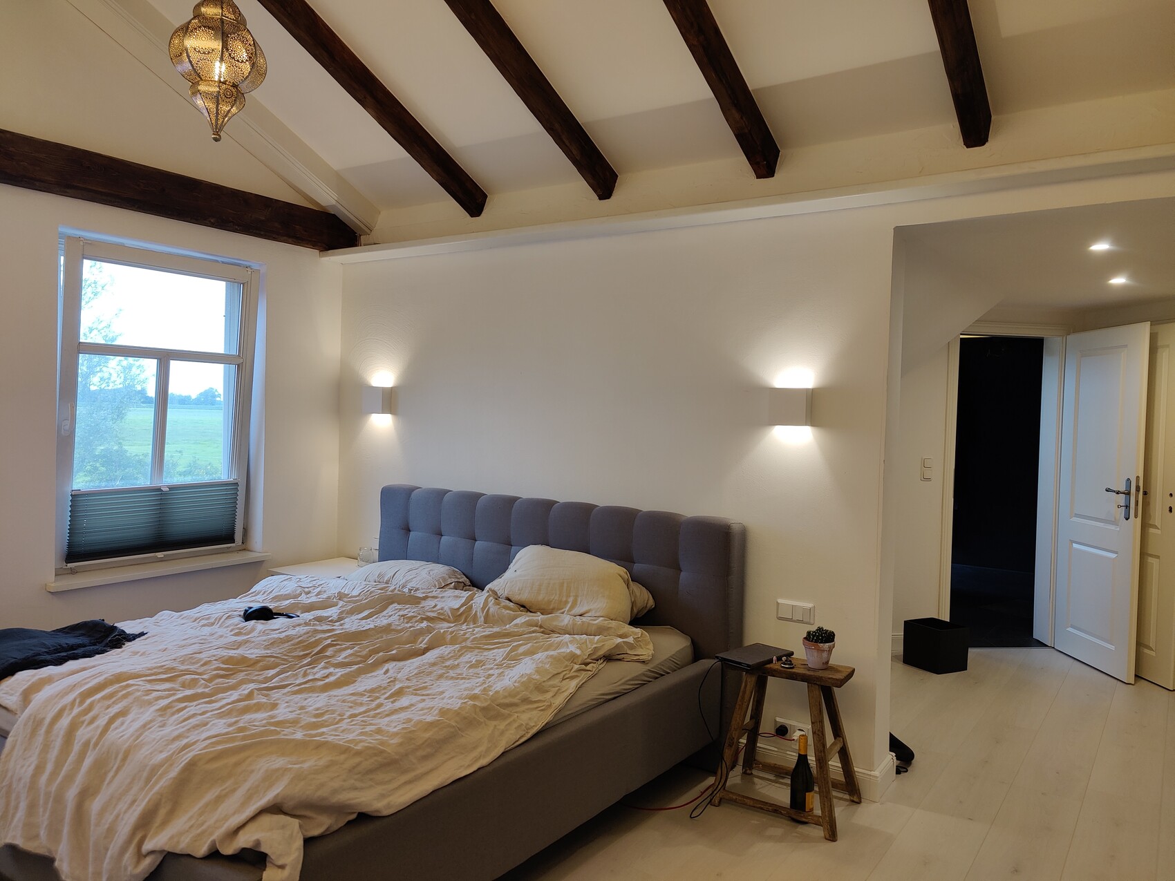 Wand hinter dem Bett verlängert (sonst hat dort kein Nachttisch hingepasst)