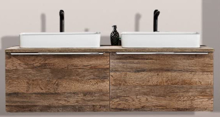 Wir planen mit einem Unterschrank von 160 cm Breite und zwei einzelnen Waschbecken (wandhängend).
