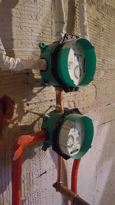 miniflexalex20.04.17 22:26Ganz vergessen, heute wurden die ersten Updates Armaturen (Grohe ibox) gesetzt. Die Wand mir noch mit Ytong Steinen Aufgemauert, deshalb wurden die Armaturen nun einfach auf den alten Putz geschraubt. Ich hänge mal ein paar Fotos an weil mir die Ausführung nicht so toll gefällt, aber eventuell bin ich etwas zu penibel? Jede iBox ist zum Beispiel nur mit zwei Schrauben anstelle 4 Schrauben befestigt, die Rohrführung sieht für mich auch etwas lieblos aus. Isoliert man eigentlich die Warmwasser Rohre die auf den Beton oder laufen und später mit Estrich umgossen werden? Was sagt ihr zu der Ausführung? Danke im Voraus.