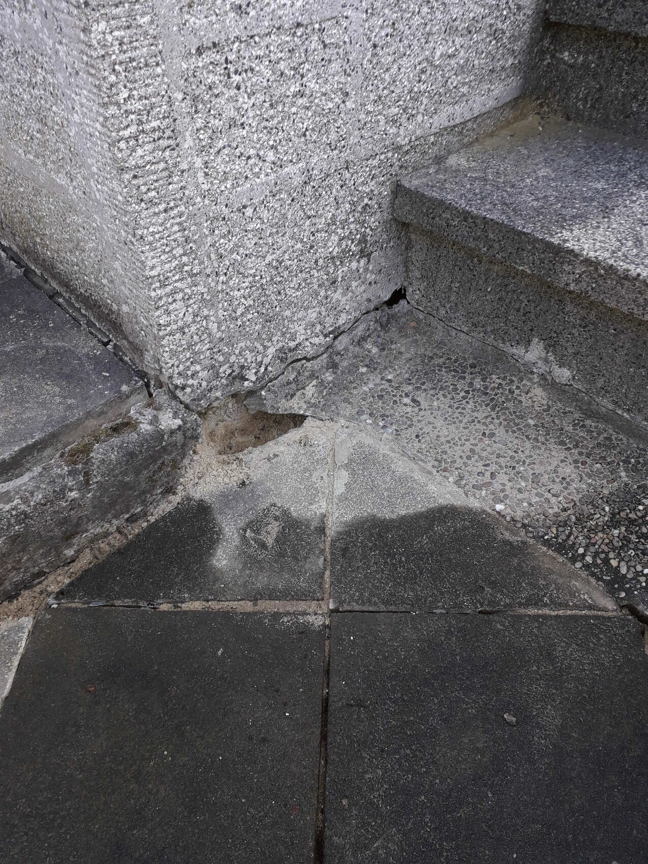 Nun die Frage: Wie bekomme ist die besagten Risse und dieses Loch am Treppenaufgang am besten zu (wenn auch nur vorläufig). Hab da schon vieles gelesen von einfachem Mörtel bis hin zu 2 K-Epoxidharz.