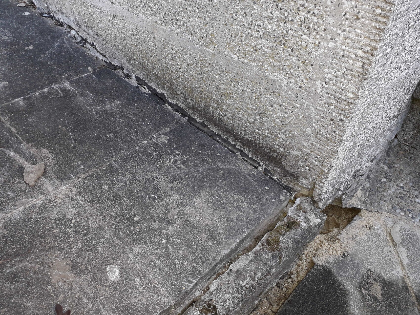 Unabhängig, ob wir das jetzt alles aufbuddeln oder von Innen „impfen“ will ich zunächst was anderes machen, weil wir die Großbaustelle aus persönlichen Gründen eh verschieben müssen. Aber zumindest will ich verhindern, dass insbesondere am Treppenaufgang und in den Rissen zwischen Hauswand und Boden weiterhin (Regen)-Wasser eindringen kann. Die Bilder veranschaulichen das ganz gut.