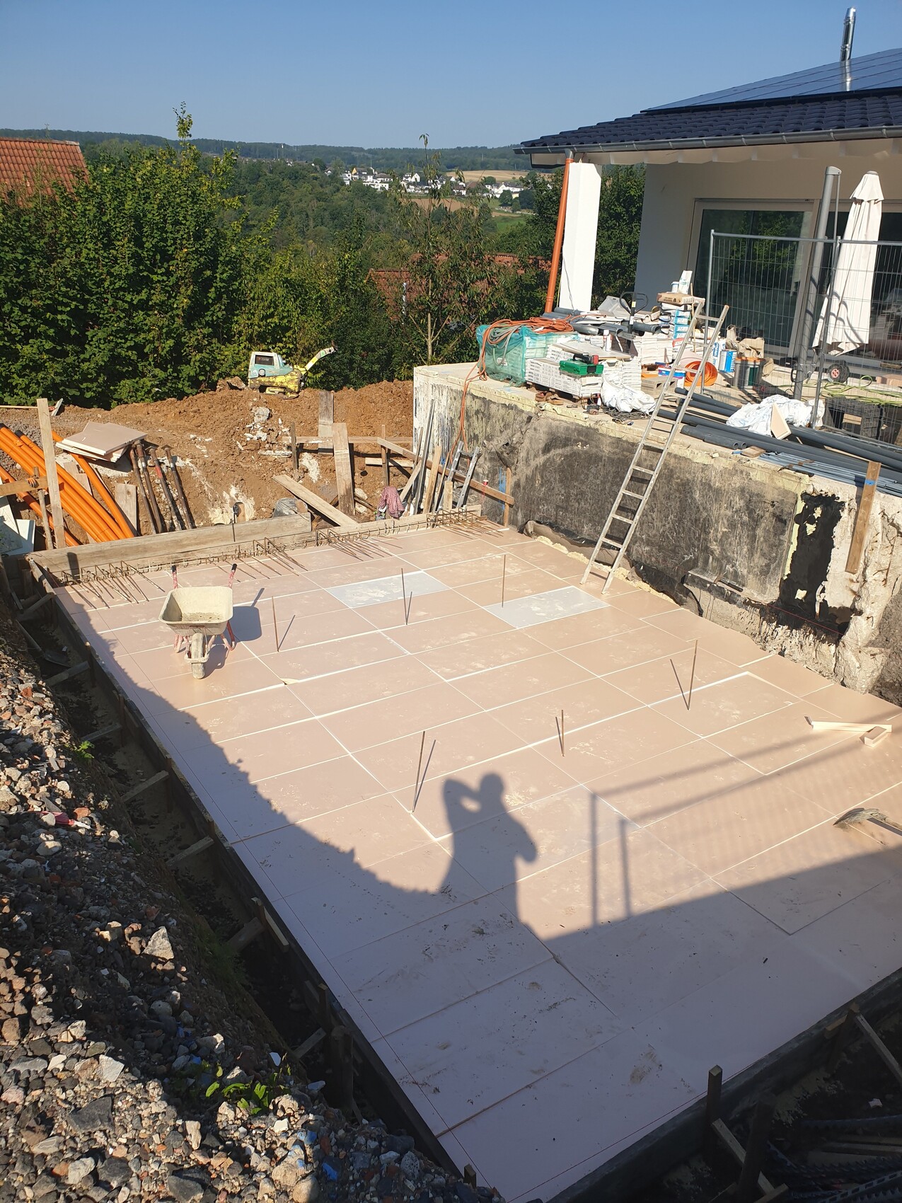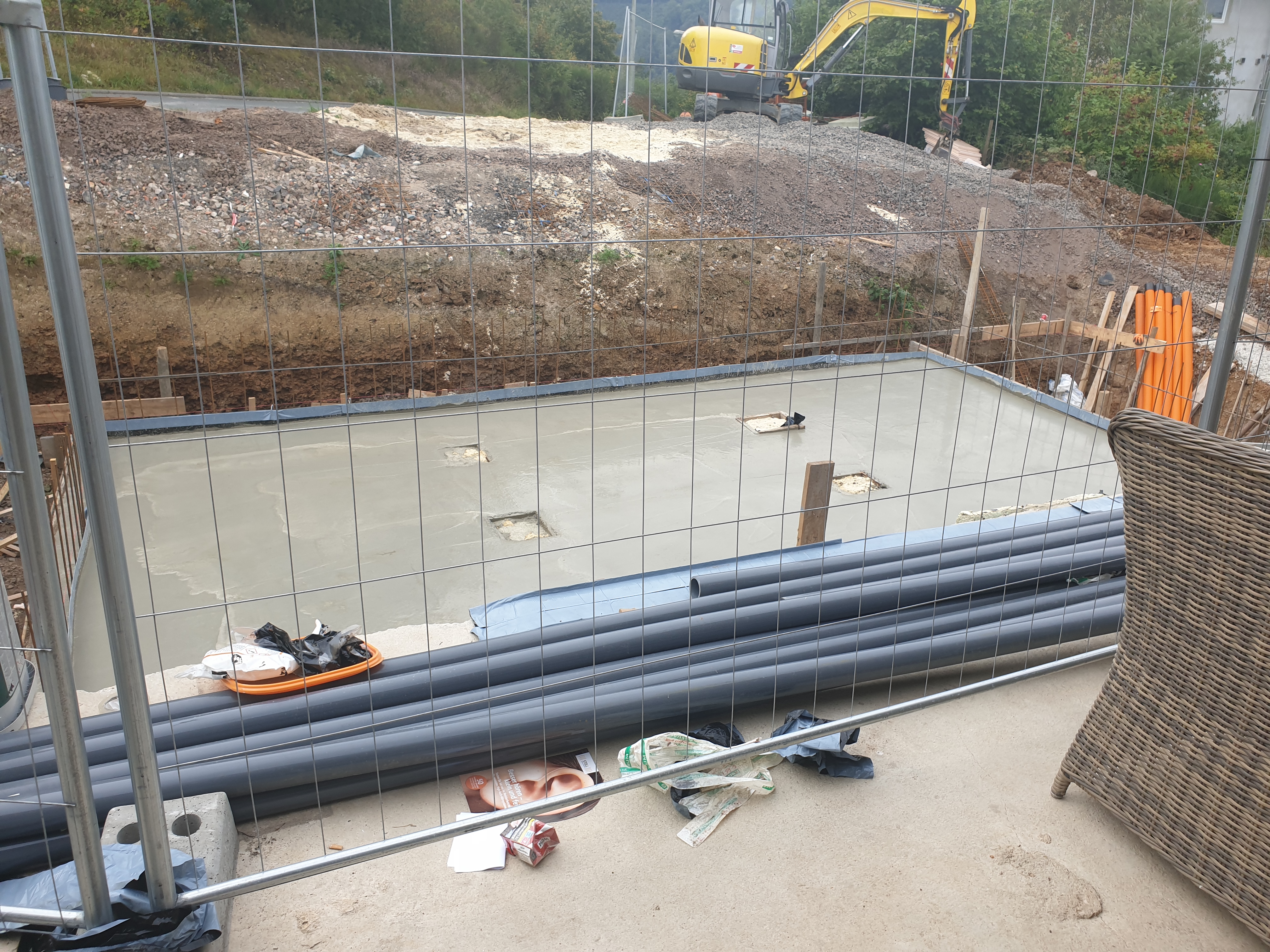 Wir haben eine Tieferliegende Stelle der Bodenplatte....es wird so aussehen, dass die Tieferliegende Stelle der Technikraum wird mit ca 179cm Raumhöhe. Drüber wird eine Flachzone entstehen mit Blick über das Tal.