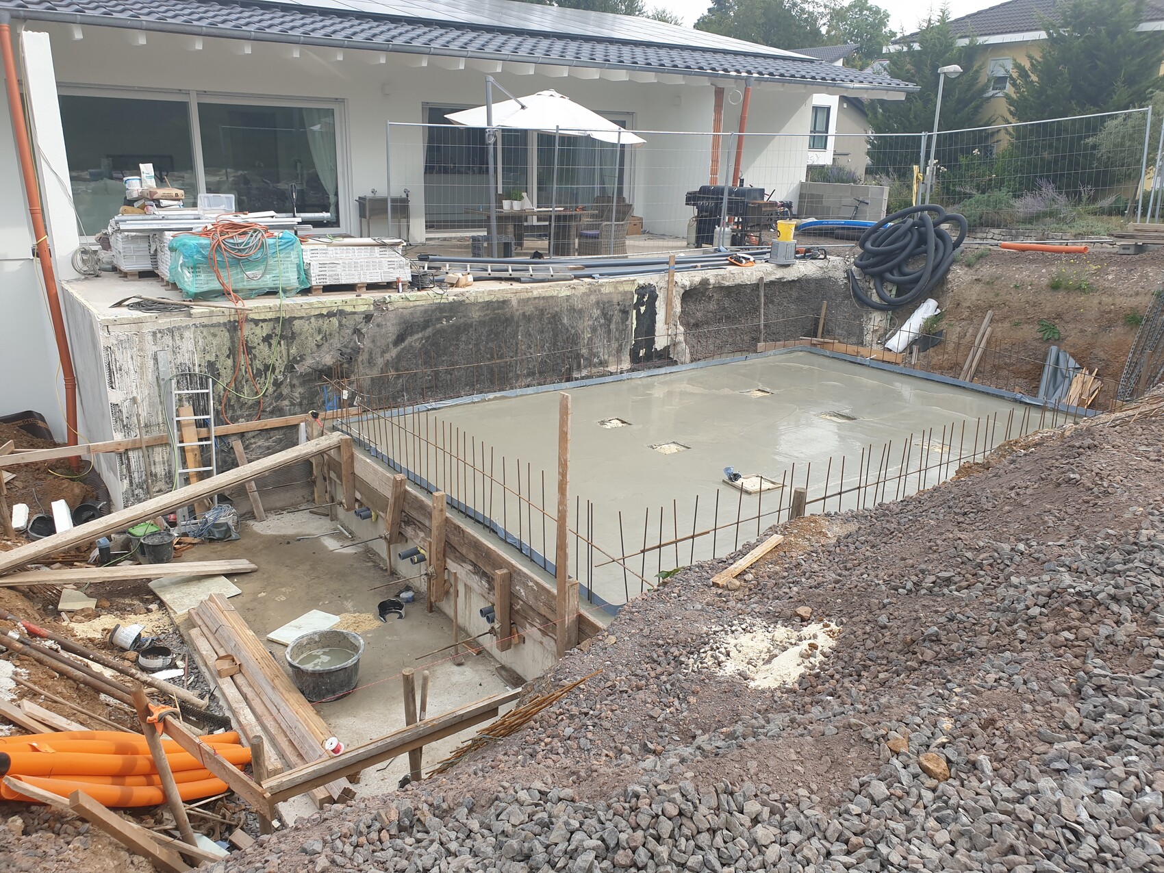 Die Ausführung ist als weiße Wanne mit WU Beton und wird noch innen mit poolfolie verklebt.