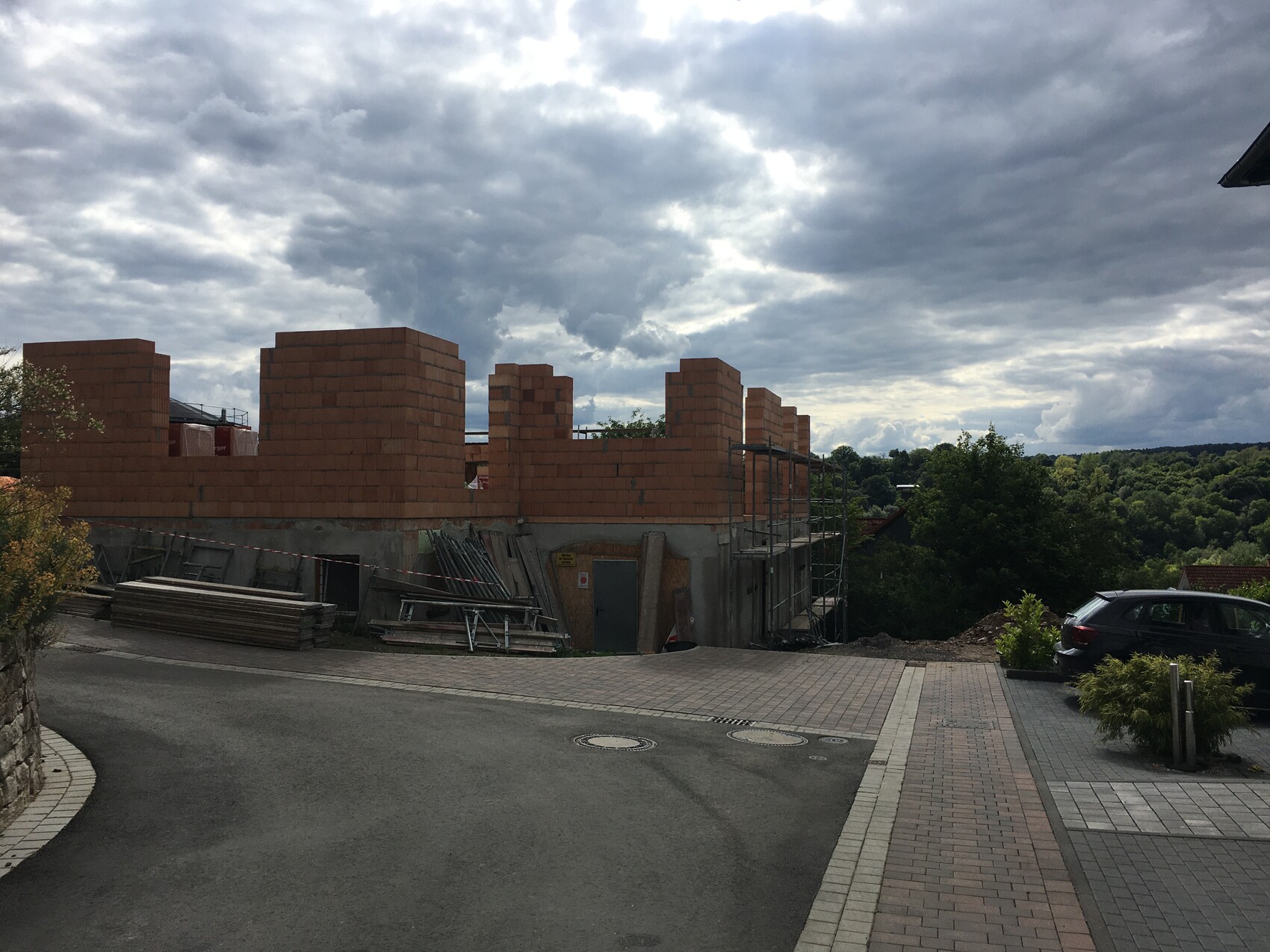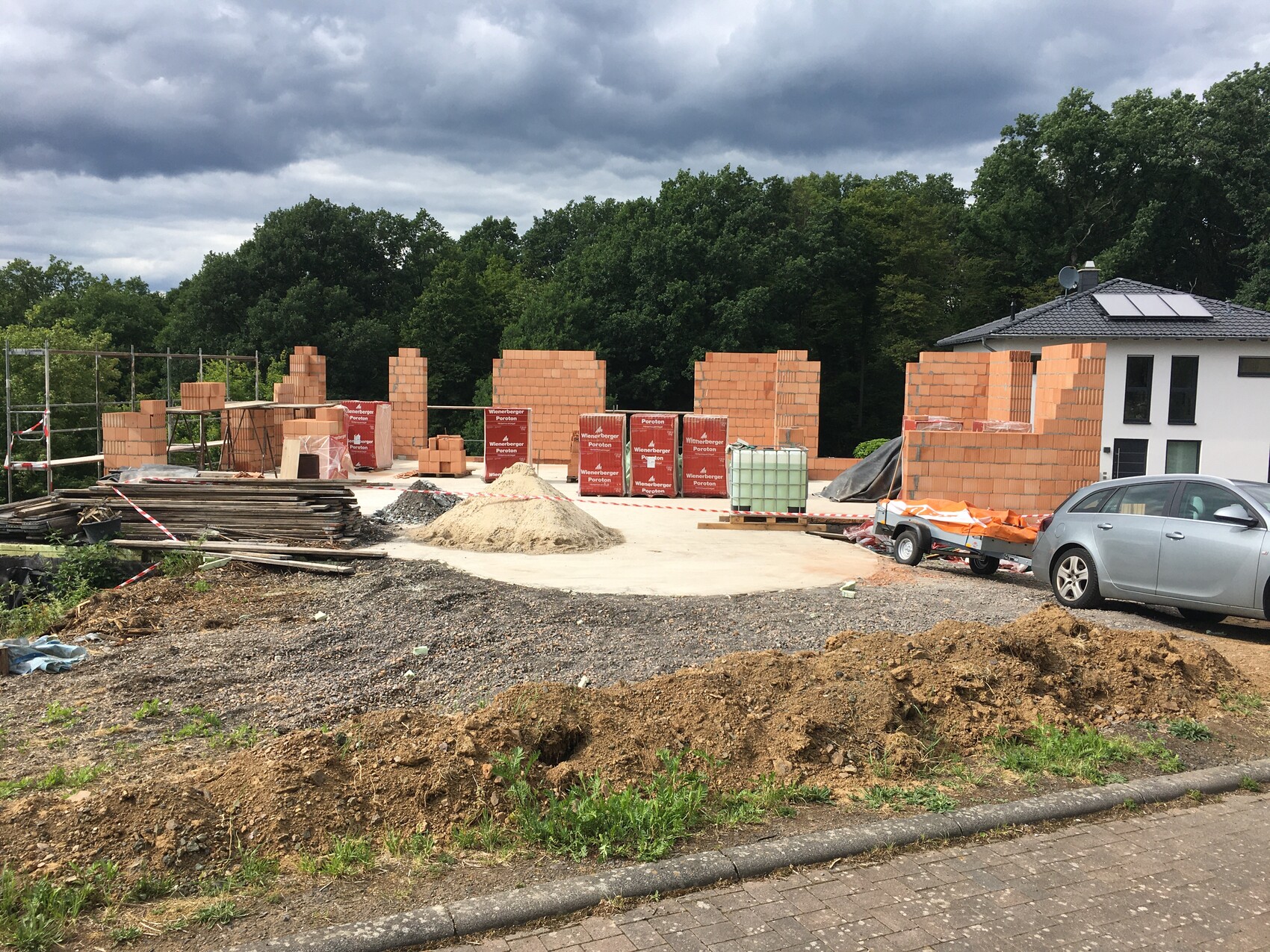 Hallo zusammen, ich versuche mal sporadische ein paar Bilder reinzustellen und ein Update zu fahren, falls Interesse besteht. Aktuell wäre das Dach zeitlich geplant. Wir haben es aber leider vor dem Urlaub von meinem Maurer nicht geschafft, alles relevante fertig zu machen. die innenwände hätten für das Dach noch hoch gemusst, da in der Statik Mittelfetten(?) vorgesehen waren, die wir zuerst nicht auf dem Schirm hatten in der Zeitplanung. Naja,... So gibts zwei Wochen Baupause und dann mauern wir bis Ende August und dann schlägt der Zimmermann auf. Nicht so tragisch.