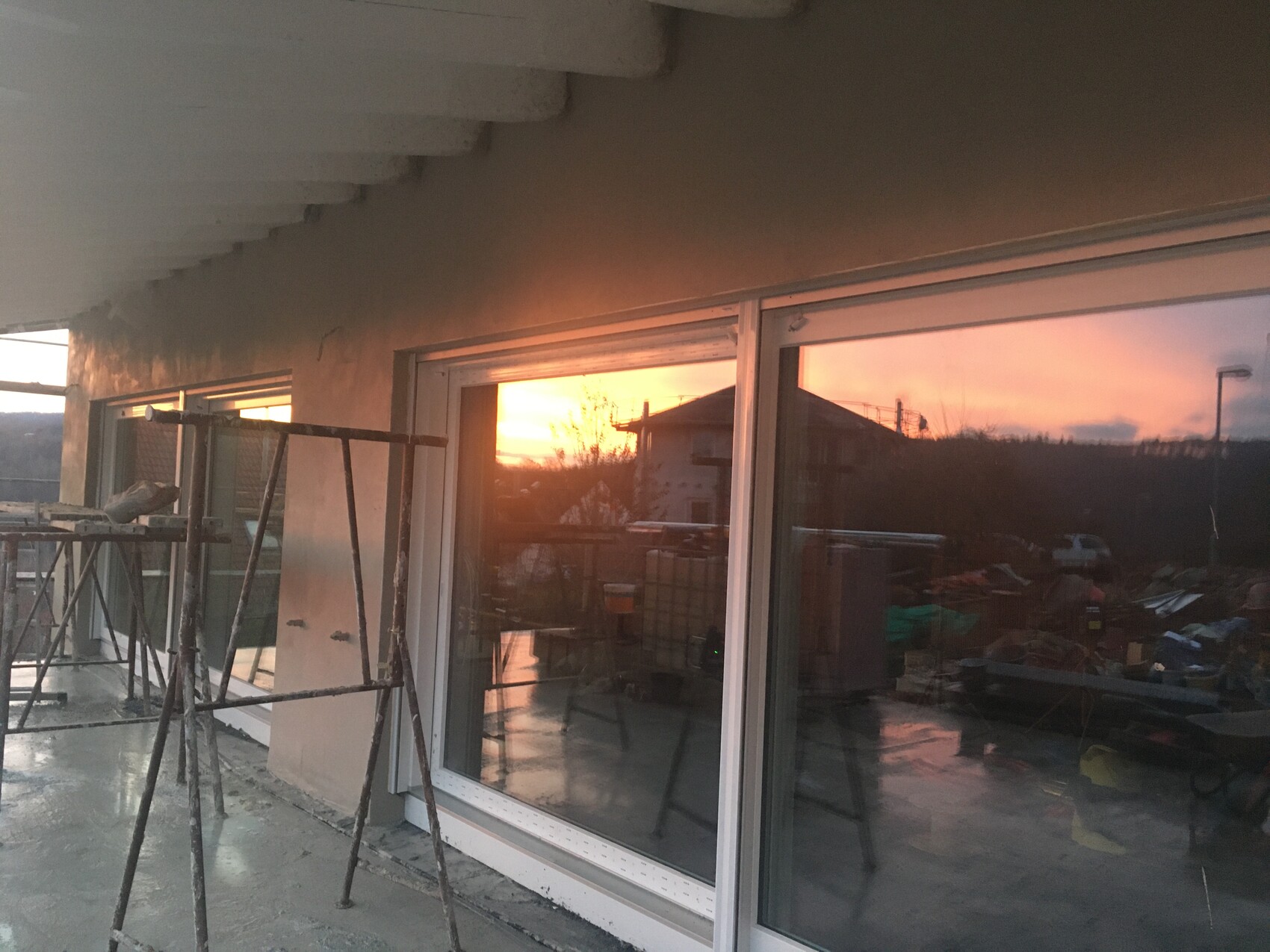 Fensterbänke sind installiert, Lüftungsanlage im Aufbau. durch die Niedrige Deckenhöhe im Bestandskeller unten wir diese nicht abgehangen sondern nur gespachtelt..... die Lüftung führen wir mit Flachkanälen von oben(Bungalow) nach unten) .. jede Menge Kernborhungen dafür vorhanden.... ich musste die Atmosphähre vom Sonnenuntergang mal mit ins Update packen.... is schon unglaublich, wenn man bisher an einer Hauptverkehrsstraße in einem dunklen Talsohle wohnt :p