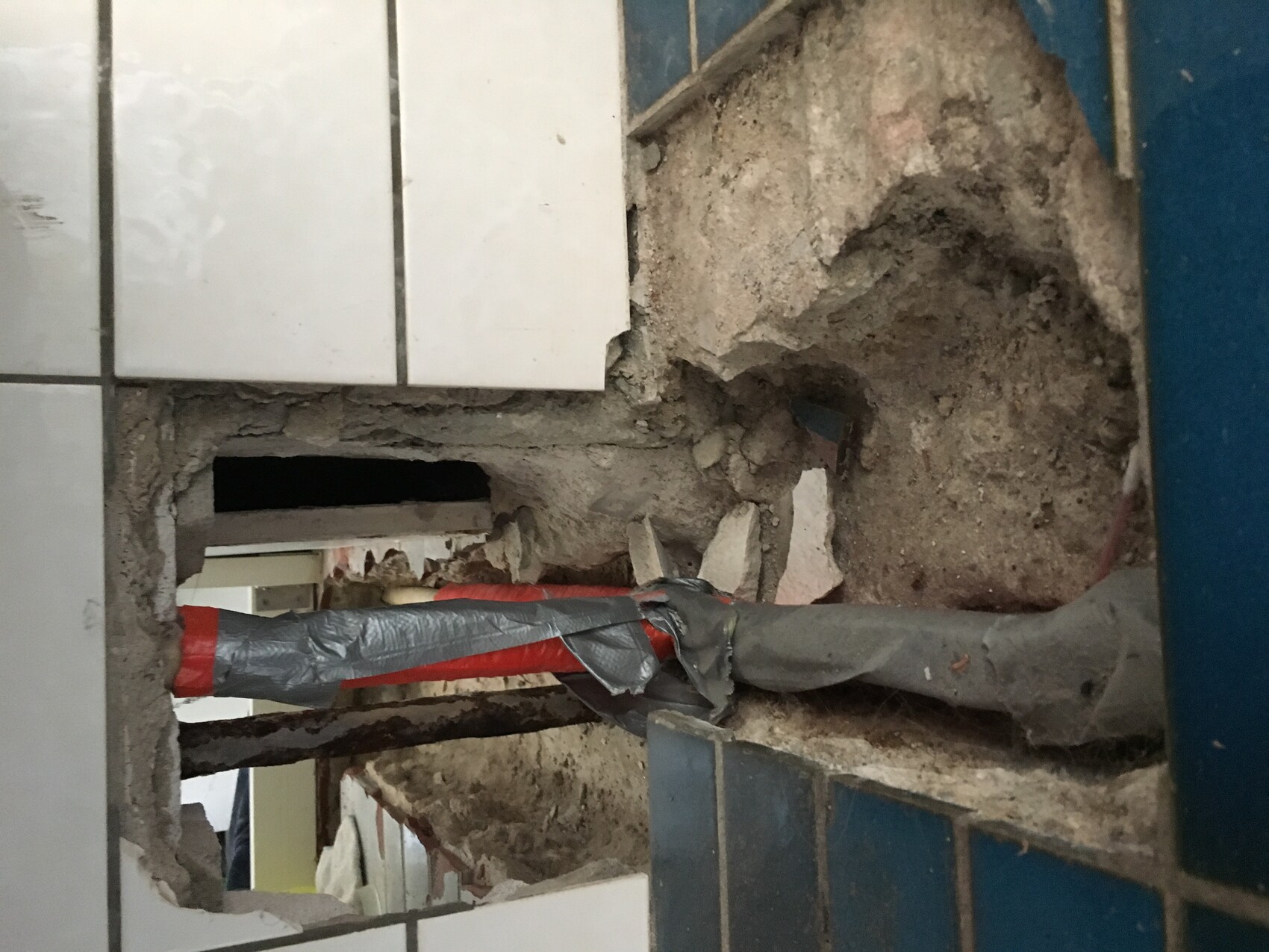 wurde in meinem Badezimmer von einer Sanitärfirma ein Teil des Bodens aufgerissen und an der Rohrleitung gearbeitet. Warum genau kann ich jetzt leider nicht mehr sagen, es wurde auf jeden Fall von meinem Vermieter angeordnet.