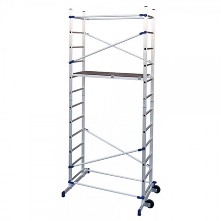 Ich habe ein Rollgerüst entdeckt, welches von der Arbeitshöhe optimal wäre, zumal es von der Höhe durch ein abnehmbares Modul auf grob die Hälfte reduziert werden kann.