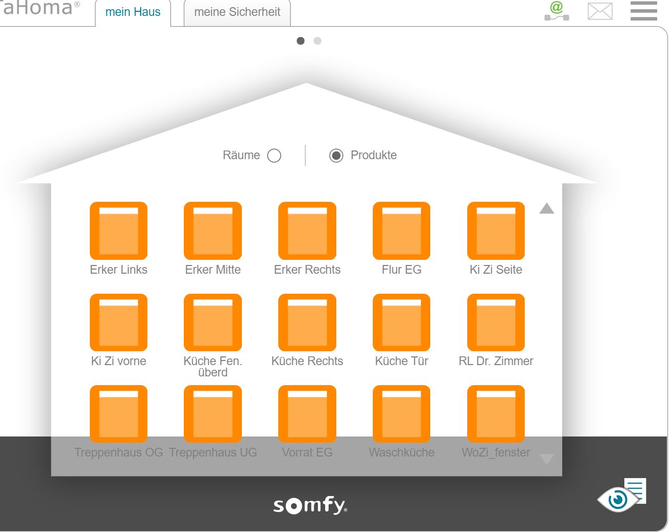 Das hätte den Vorteil, dass ich das Handy rausholen kann und alle Rollläden auf Knopfdruck hoch und runter fahren kann. Die Frage ist nur, geht das überhaupt?Mit Tahoma auf jeden Fall 🙂 Ein Teil unserer Rollläden:Ich habe verschiedene Szenen programmiert, z. B.