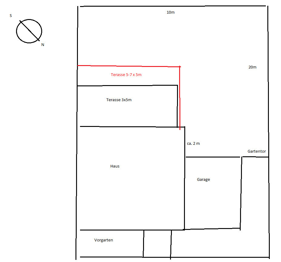 Die neue Terrasse soll dann wahrscheinlich 6-7x5-6m sein