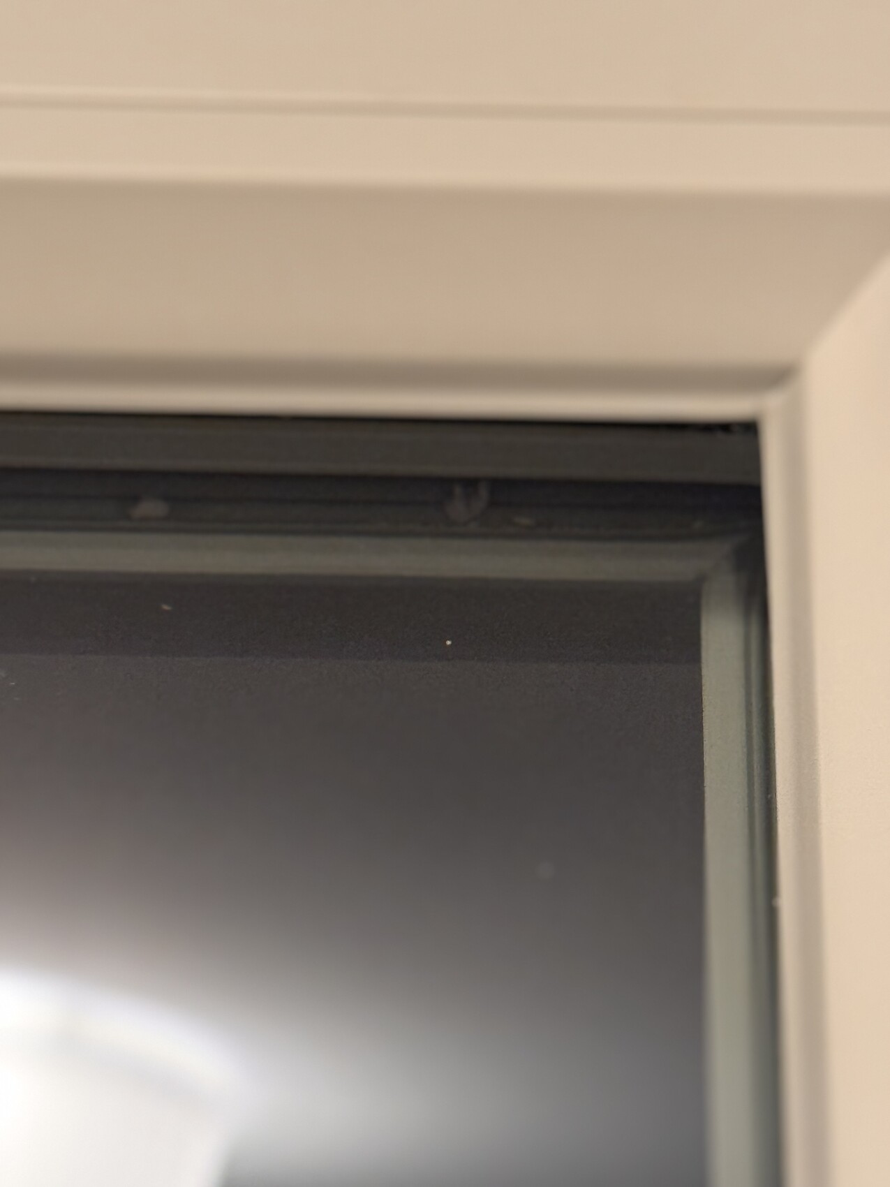 Ein weiteres Problem ist, dass zwischen den Dichtungen außen an der Scheibe sich Dreck / Spinnenweben ansammeln (siehe Bilder) außerdem lösen sich schwarze Fäden.