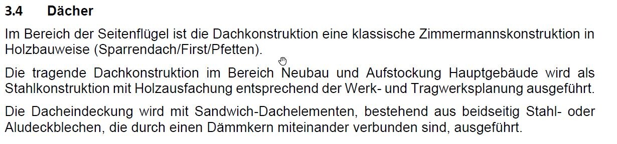 Als letzte Bild noch ein Auszug aus der Baubeschreibung zur Ausführung des Dachs.