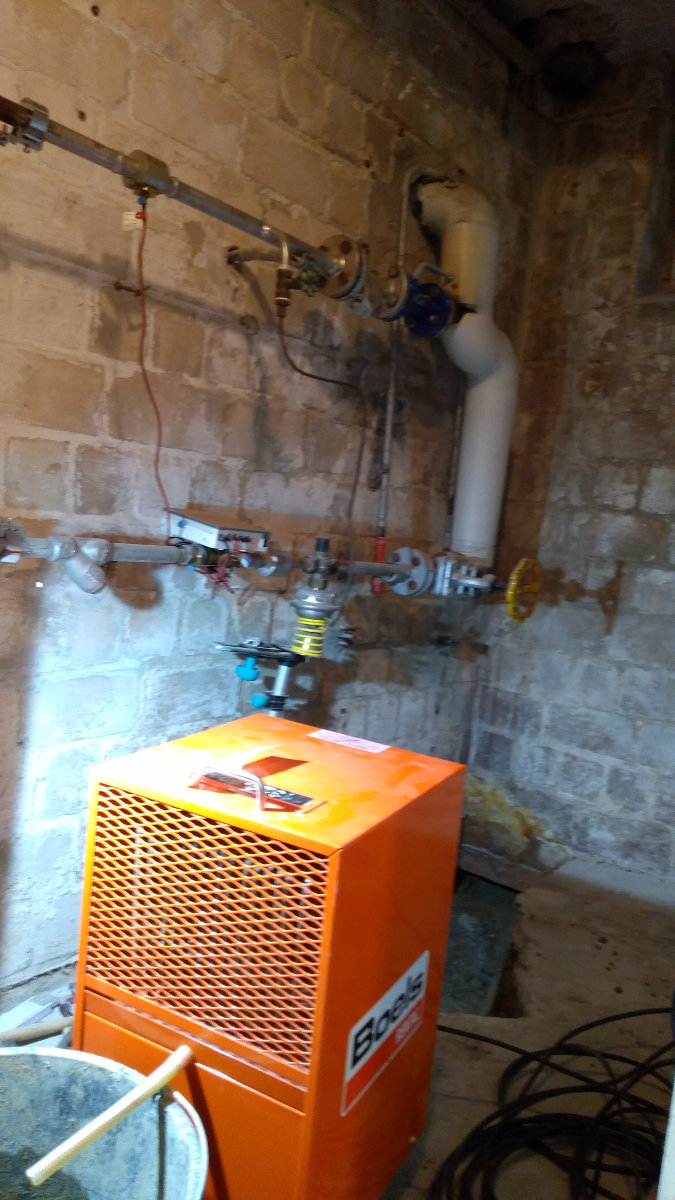 Danach durfte ein Baustellentrockner etwas die Feuchte reduzieren.